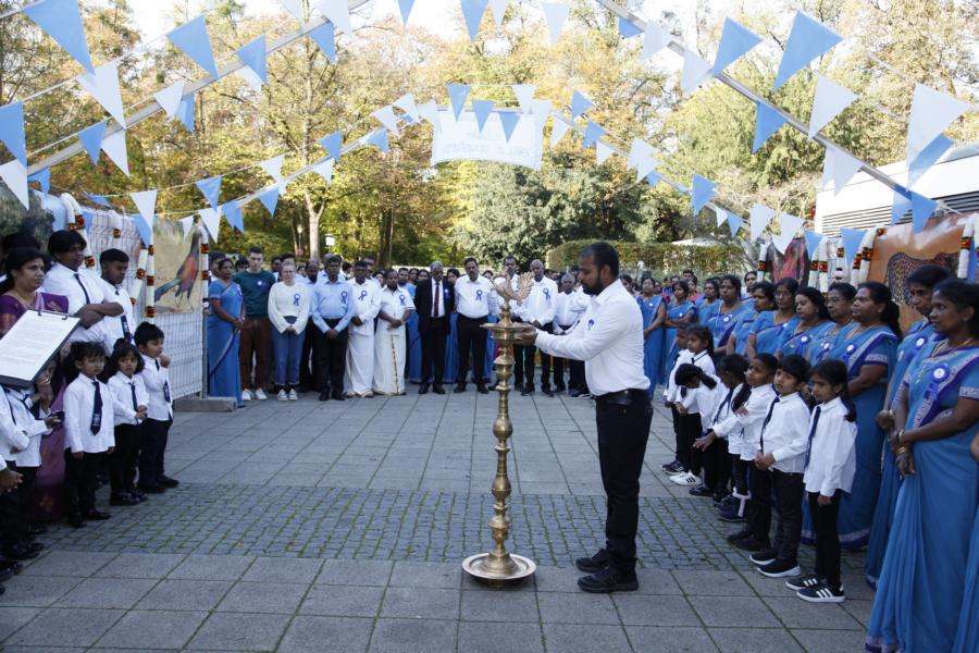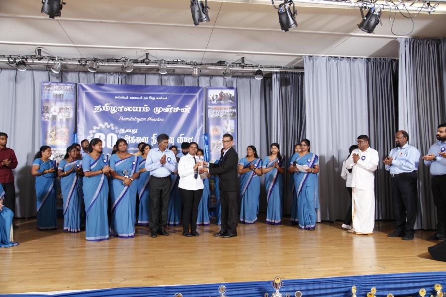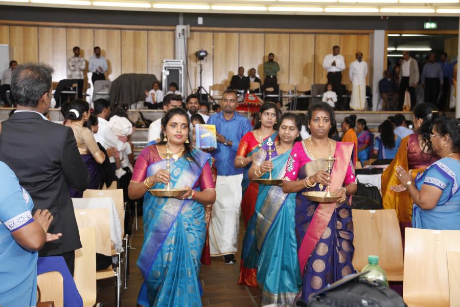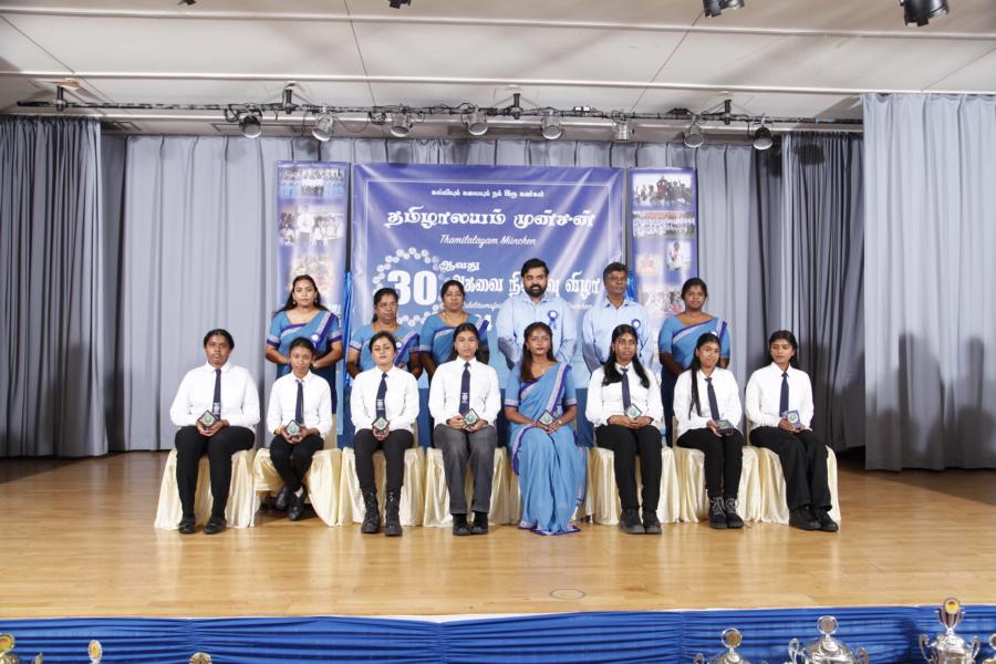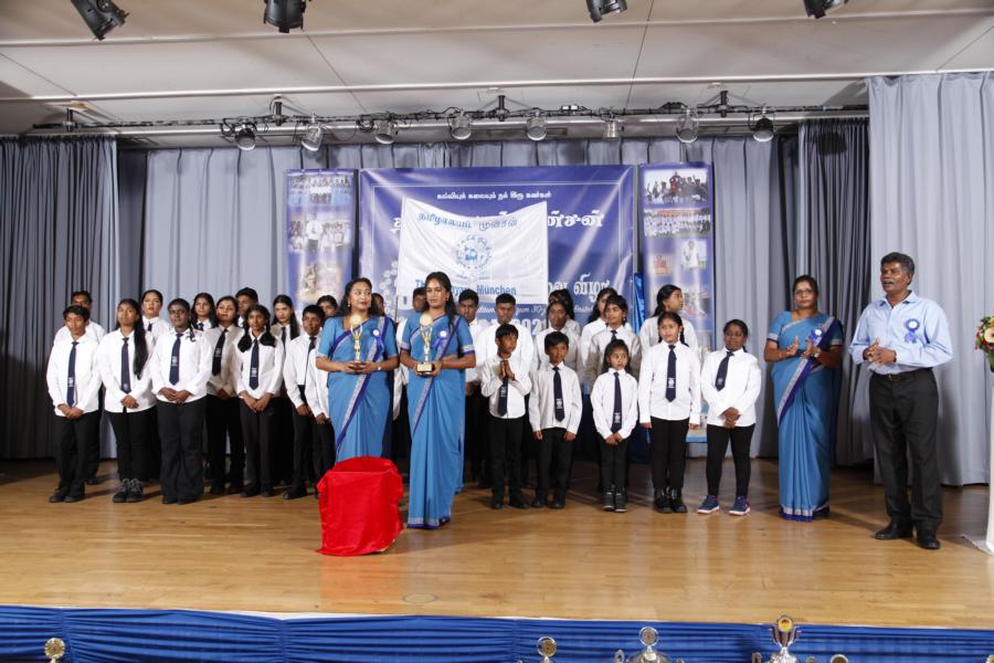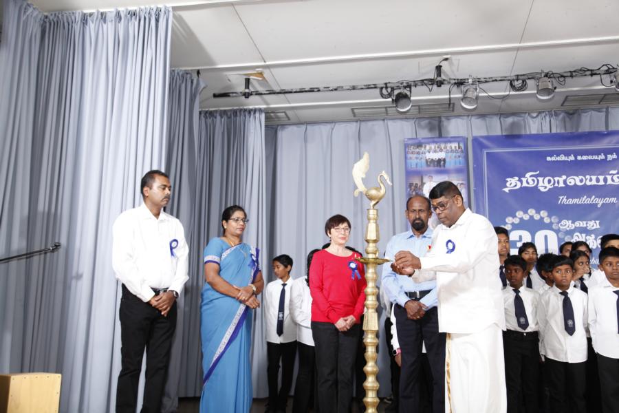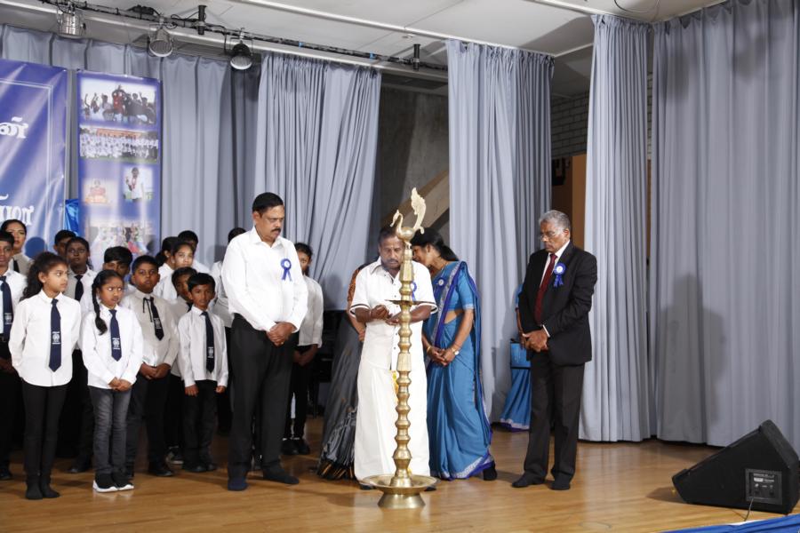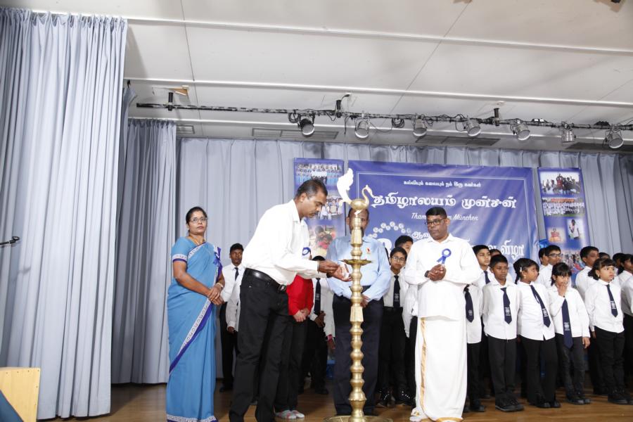 , யேர்மன் தமிழர் ஒருங்கிணைப்புக் குழுவின் பொறுப்பாளர் திரு. யோன்பிள்ளை சிறிரவீந்திரநாதன், தமிழ்க் கல்விக் கழகத்தின் பொறுப்பாளர் “செம்மையாளன்” திரு. செல்லையா லோகானந்தம், தமிழ்க் கல்விக் கழகத்தின் கல்வி மற்றும் தமிழ்த்திறன் பிரிவுப் பொறுப்பாளர் “தமிழ்த்திறனாளன்” திரு. இராஜ. மனோகரன், யேர்மன் தமிழ்ப் பெண்கள் அமைப்புப் பொறுப்பாளர் திருமதி வசந்தி மனோகரன், தமிழர் ஒருங்கிணைப்புக் குழுவின் தென்மாநிலப் பொறுப்பாளர் திரு. கனகையா சிறீகாந்தன், தமிழ்மணிப் புலவர் ஆசிரியர் திரு. ஆறுமுகம் விவேகானந்தன், தமிழ்க் கல்விக் கழகத்தின் தென்மாநிலச் செயற்பாட்டாளர் “தமிழ் வாரிதி” திருமதி சௌந்தராதேவி அரசரட்ணம், முன்சன் கோட்டப் பொறுப்பாளர் திரு. ஜெகநாதன் சுகுமார், முன்சன் தமிழாலயத்தின் உதவி நிர்வாகி, ஆசிரியை திருமதி பகீரதி ஆனந்தசிங்கம் ஆகியோர் மங்கல விளக்கினை ஏற்றித் தொடங்கிவைத்தனர். இவர்களுடன் தமிழ்க் கல்விக் கழகத்தின் மற்றைய பிரிவுசார் பொறுப்பாளர்கள், பிரிவுசார் துணைப் பொறுப்பாளர்கள், முன்னிலைச் செயற்பாட்டாளர்கள் மற்றும் அயல் தமிழாலயங்களின் நிர்வாகிகள், ஆசிரியர்களும் கலந்து கொண்டு விழாவைச் சிறப்பித்தனர்.