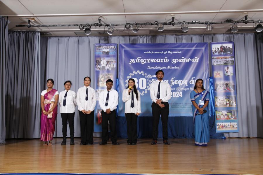 தமிழ்க் கல்விக் கழக நிர்வாகத்தின் கீழ் இயங்கும் நூற்றுக்கு மேற்பட்ட தமிழாலயங்களில் ஒன்றான முன்சன் தமிழாலயத்தின் முத்தகவை நிறைவு விழா கடந்த 27.10.2024 ஞாயிற்றுக்கிழமை காலை 09.45 மணிக்கு தாயகம், மொழி, பண்பாடு என்பவற்றைக் காத்திடும் நோக்கத்தோடு பயணித்த மாவீரர்களையும், மக்களையும் நினைவேந்திப் பொதுச்சுடர் ஏற்றப்பட்டது. பொதுச்சுடரினை முன்சன் தமிழாலயத்தின் முன்னாள் பெற்றோர் பிரதிநிதியும் தமிழர் விளையாட்டுக் கூட்டமைப்பின் தென்மாநிலச் செயற்பாட்டாளரில் ஒருவருமான திரு. கிருபாமூர்த்தி சபேசன் அவர்கள் ஏற்றிவைத்தார். தொடர்ந்து சிறப்பு வருகையாளர்களைப் பண்பாடு தழுவி, மண்டபத்தினுள் அழைத்து வந்தனர். அவர்களைத் தமிழாலயத்தின் பேரக்குழந்தைகளும் இணைந்து வரவேற்றமை சிறப்பிற்குரியதாகும்.