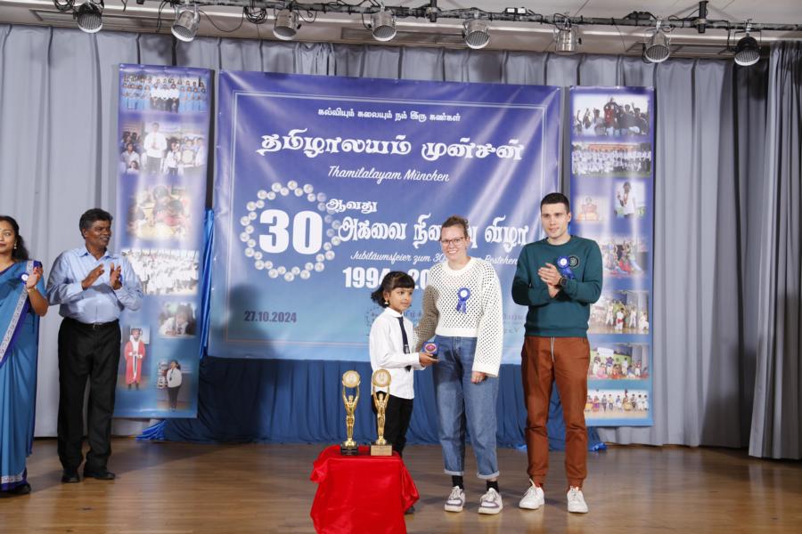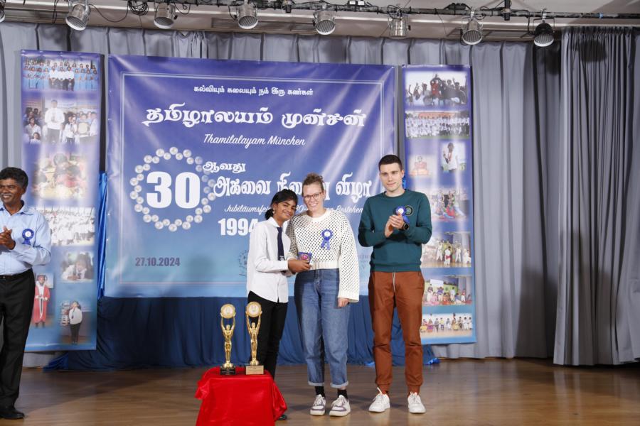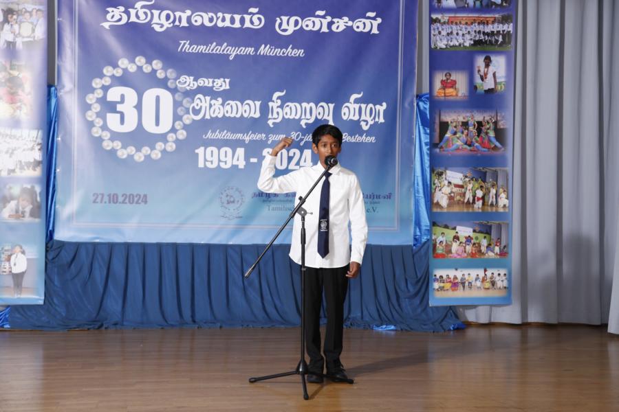 சிறப்புரையை யேர்மன் தமிழர் ஒருங்கிணைப்புக் குழுவின் பொறுப்பாளர் திரு. யோன்பிள்ளை சிறிரவீந்திரநாதன் அவர்களும் வாழ்த்துரைகளைத் தமிழ்க் கல்விக் கழகத்தின் தேர்வுப்பிரிவுப் பொறுப்பாளர் திரு. சேரன் யோகேந்திரன் அவர்களும் தமிழாலயத்தைத் தொடங்கிவைத்த முன்னாள் உலகத் தமிழர் இயக்கத்தின் தென்மாநிலச் செயற்பாட்டாளர் ஆசிரியர், தமிழ்மணிப்புலவர். திரு. ஆறுமுகம் விவேகானந்தன் அவர்களும், தமிழ் கல்விக் கழகத்தின் கல்வி மற்றும் தமிழ்த்திறன் பிரிவுப் பொறுப்பாளர் “தமிழ்த்திறனாளன்” திரு. இராஜ மனோகரன் அவர்களும், தமிழர் ஒருங்கிணைப்புக் குழுவின் தென்மாநிலப் பொறுப்பாளர் திரு. கனகையா சிறிகாந்தன் அவர்களும், தமிழ்க் கல்விக் கழகத்தின் கல்விப்பிரிவுத் துணைப் பொறுப்பாளர். திரு. ராமேஸ் ஜெயக்குமார் அவர்களும் வழங்கிச் சிறப்பித்தனர். மாணவர்களின் சிறப்பான கலை வெளிப்பாடுகள் அரங்கைத் தொடர்ந்தும் உற்சாகம் ஊட்டியதோடு, பார்வையாளர்களின் சிந்தனையைத் தூண்டக்கூடியதாகவும் அமைந்தன.
