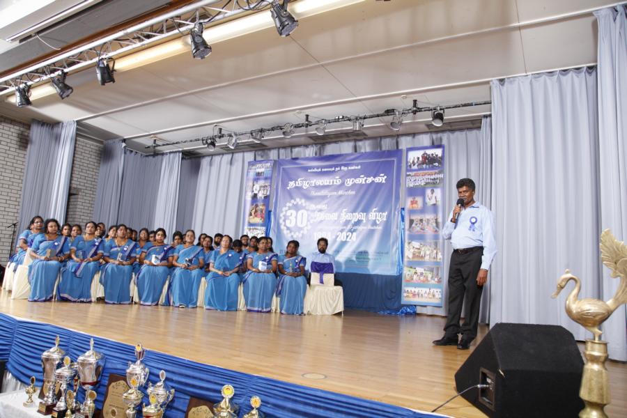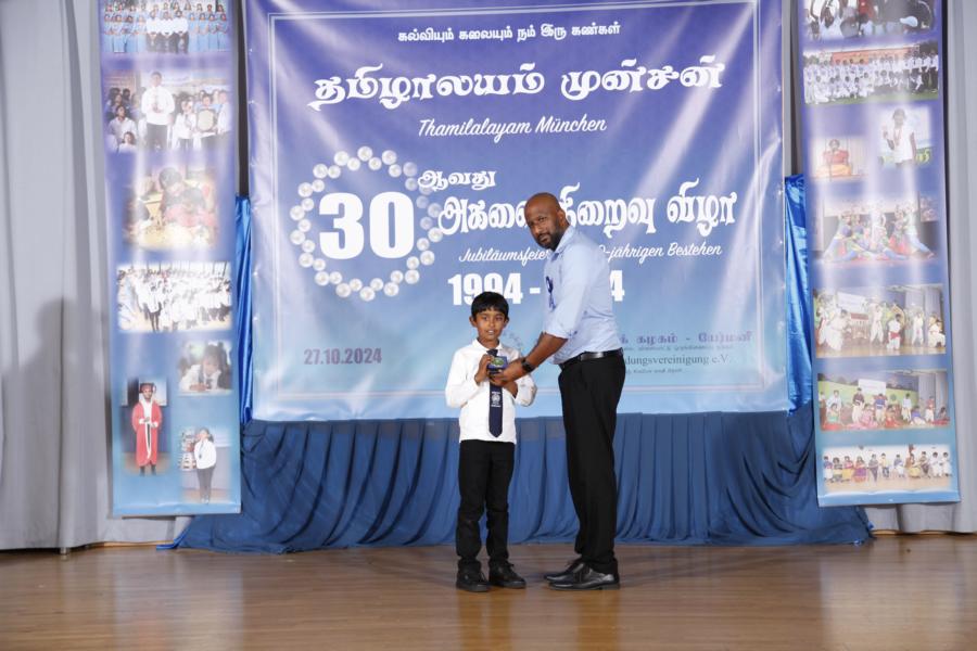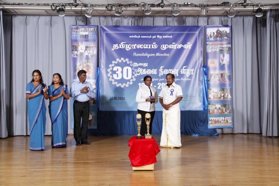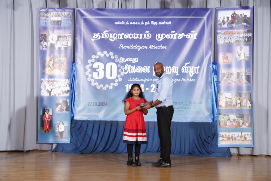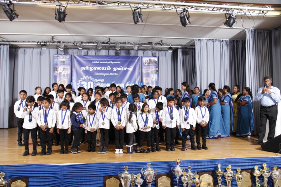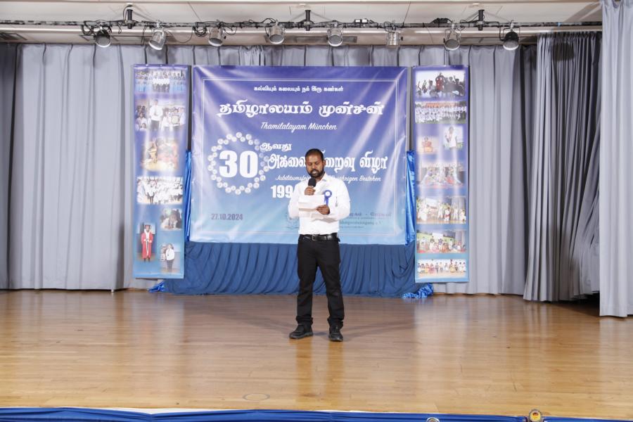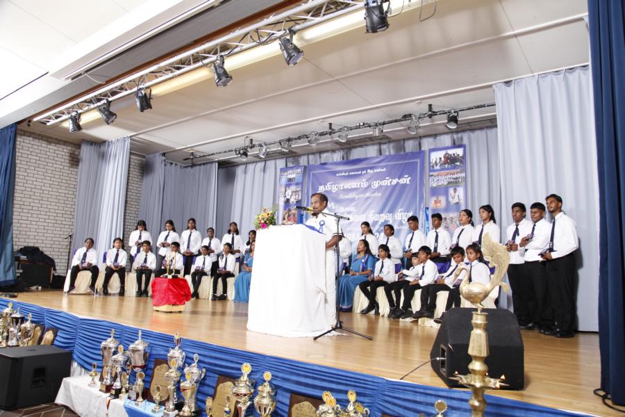 அகவணக்கம், தமிழாலயப்பண் மற்றும் வரவேற்பு நடனத்தைத் தொடர்ந்து தமிழாலய நிர்வாகி “தமிழ் மாணி” திரு. நாகராசா நிர்மலதாசன் அவர்களின் வரவேற்புரையுடன் அரங்க நிகழ்வுகள் தொடங்கப்பட்டன. கலை நிகழ்வுகளோடு கடந்த ஐந்து ஆண்டுகளில் தேர்வு, தமிழ்த்திறன் போட்டி, கலைத்திறன் போட்டி, மாவீரர் வெற்றிக்கிண்ண விளையாட்டுப் போட்டி ஆகியவற்றில் வெற்றிபெற்ற வெற்றியாளர்களுக்கான மதிப்பளிப்புகள் இடம்பெற்றன. தமிழாலயத்தின் தூண்களாக விளங்கும் ஆசிரியர்களுக்கான மதிப்பளிப்புகளைத் தமிழ்க் கல்விக் கழகத்தின் பொறுப்பாளர் “செம்மையாளன்” திரு. செல்லையா லோகானந்தம் வாழ்த்தி வழங்கி வைத்தார்.