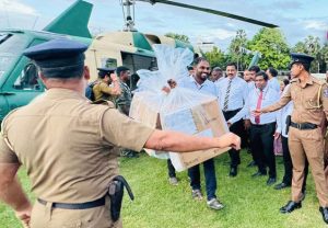 நெடுந்தீவிலிருந்து ஹெலிகொப்டர் மூலம் வருகை தந்த சிரேஷ்ட தலைமை தாங்கும் அலுவலர்களையும், விமானிகளையும் யாழ்ப்பாண மாவட்ட அரசாங்க அதிபரும் தெரிவத்தாட்சி அலுவலருமான மருதலிங்கம் பிரதீபன் மற்றும் உதவித் தேர்தல்கள் ஆணையாளர் இ.கி. அமல்ராஜ் , மற்றும் வடமாகாண பிரதிப் பொலிஸ்மா அதிபர் ஏ.ஜெ. ஹாலிங்க ஜெயசிங்க ஆகியோா் வரவேற்றார்கள்.