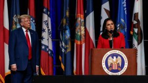 கடந்த 2022-ல் ஜனநாயக கட்சியில் இருந்து விலகினார். நடப்பு ஆண்டு அதிபர் தேர்தலில் குடியரசுக் கட்சியை சேர்ந்த டொனால்ட் ட்ரம்புக்கு ஆதரவு தெரிவித்தார். தொடர்ந்து தேர்தல் பிரச்சாரத்தில் ட்ரம்புக்கு ஆதரவாக பேசினார். தனது பரப்புரையில் தற்போதைய துணை அதிபர் கமலா ஹாரிஸை விமர்சித்தார். அது ட்ரம்ப் வெற்றிக்கு உதவியது. இந்நிலையில், உளவுத்துறை இயக்குநராக அவர் நியமிக்கப்பட்டுள்ளார்.