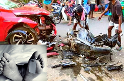 பெண் வைத்தியர் ஒருவரின் காரும் மோட்டார் சைக்கிளும் மோதிக்கொண்டதில் இந்த விபத்து நேர்ந்துள்ளது.