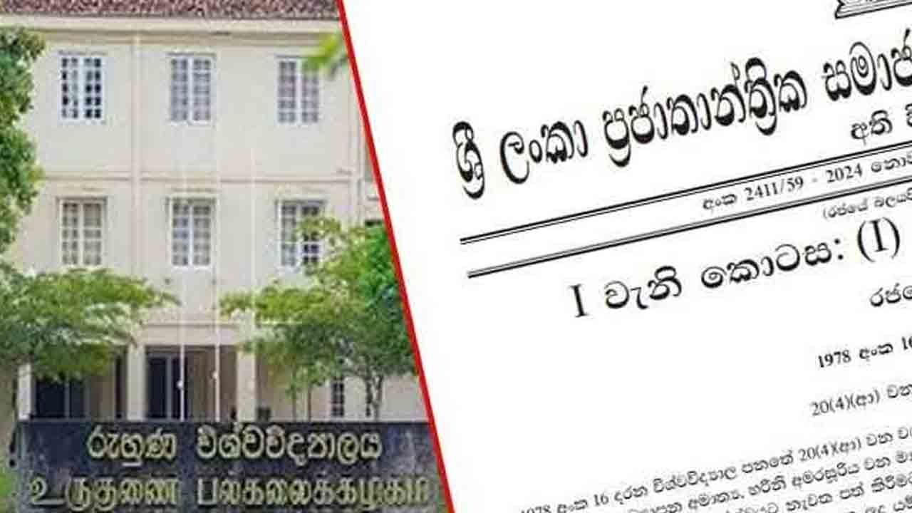 1978 ஆம் ஆண்டின் 16ஆம் இலக்க பல்கலைக்கழகங்கள் சட்டத்தின் பிரிவு 20(4)(அ) சரத்தின் கீழ் வழங்கப்பட்ட அதிகாரங்களின் அடிப்படையில் இந்த வர்த்தமானி வௌியிடப்பட்டுள்ளது.