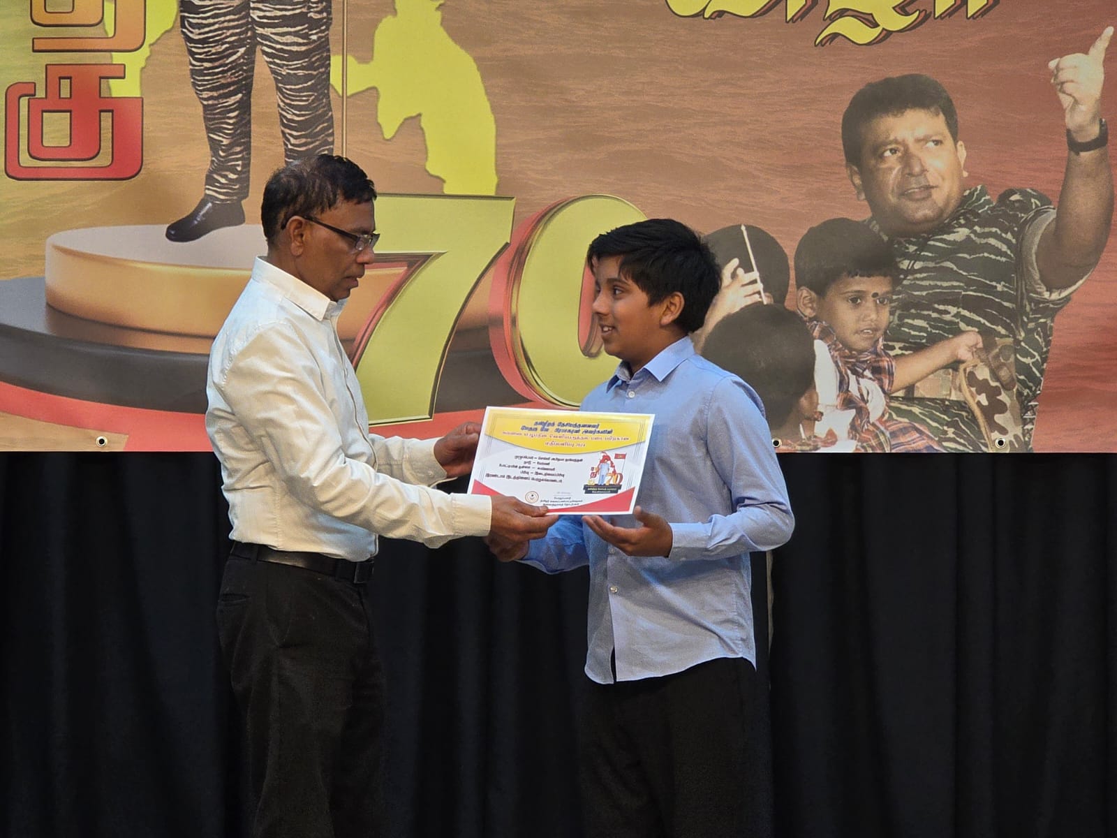 அந் நிகழ்வில் அனைத்துலகத் தொடர்பகத்தின் கலைபண்பாட்டுக் கழகத்தினால் நாடுகள் வாரியாக நடாத்தப்பட்ட மேதகு 70 எனும் போட்டிநிகழ்வில் யேர்மனியிலிருந்து பங்குபற்றி வெற்றியீட்டியவர்களுக்கு சான்றிதழ்களும் பரிசில்களும் வழங்கி மதிப்பளிக்கப்பட்டது குறிப்பிடத்தக்கதாகும்.