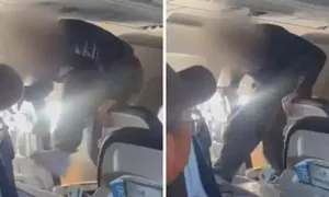 அமெரிக்காவின் ஆஸ்டின் நகரில் இருந்து லாஸ் ஏஞ்சல்சுக்கு யுனைடட் ஏர்லைன்ஸ் நிறுவனத்திற்கு சொந்தமான விமானம் ஒன்று புறப்பட்டது. நடுவானில் அந்த விமானம் பறந்து கொண்டிருந்தபோது விமானத்தில் பயணித்த வாலிபர் ஒருவர் திடீரென தனது இருக்கை மீது ஏறினார்.