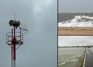 முல்லைத்தீவு பகுதியில் கடற்கரையை அண்மித்த பகுதிகளில் சுனாமி எச்சரிக்கை சமிக்ஞைகள் பாெருத்தப்பட்டுள்ளது. அதிலிருந்து இன்று மாலை ஒலி எழுந்துள்ளது.