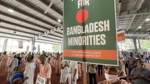 இதற்கிடையே, தேச துரோக வழக்கில் சின்மோய் தாஸ் கைது செய்யப்பட்டிருப்பது வங்கதேச இந்துக்களிடம் கொந்தளிப்பை ஏற்படுத்தி உள்ளது. அவரை விடுதலை செய்ய வலியுறுத்தி போராட்டம் நடந்து வருகிறது.