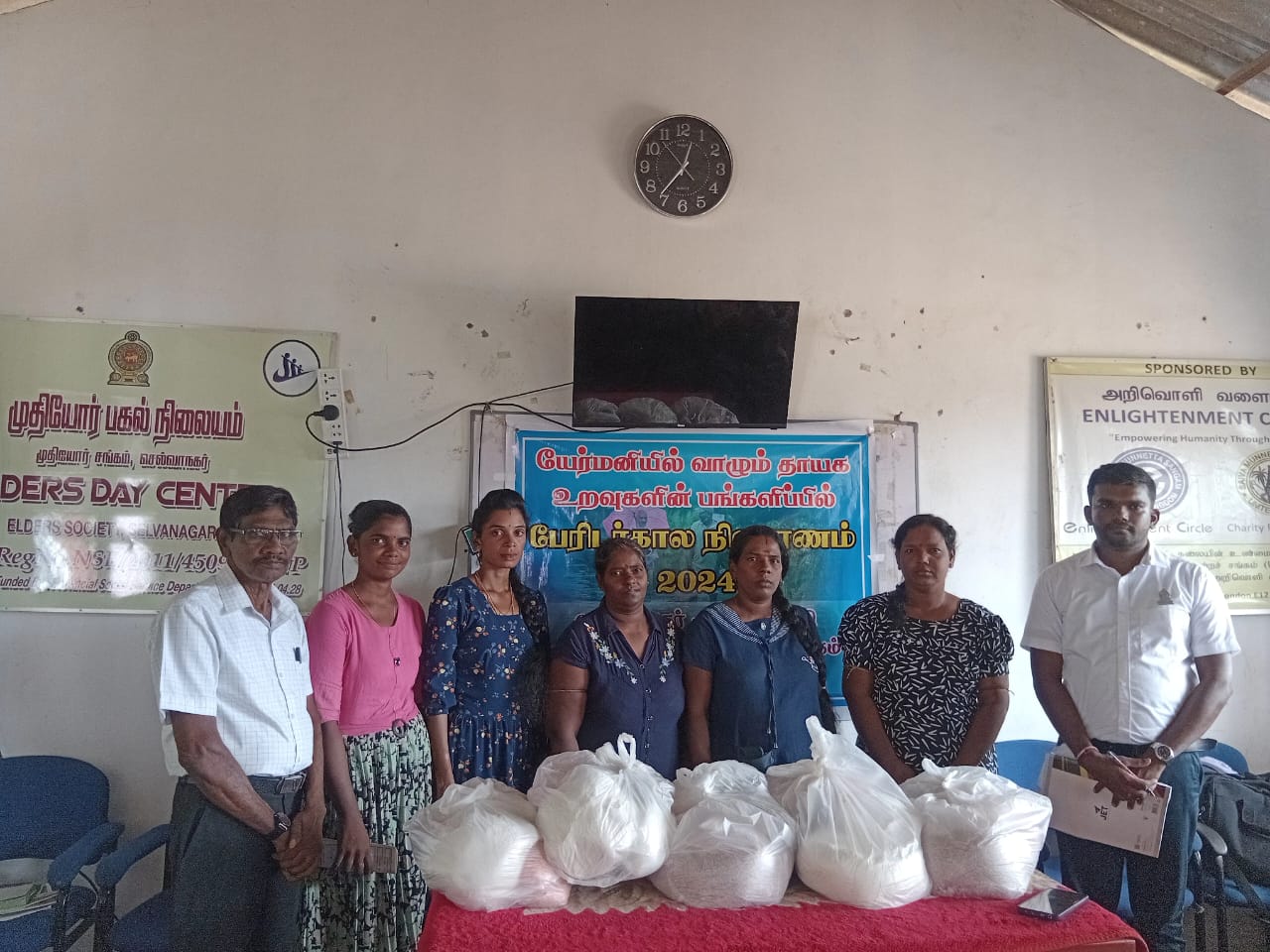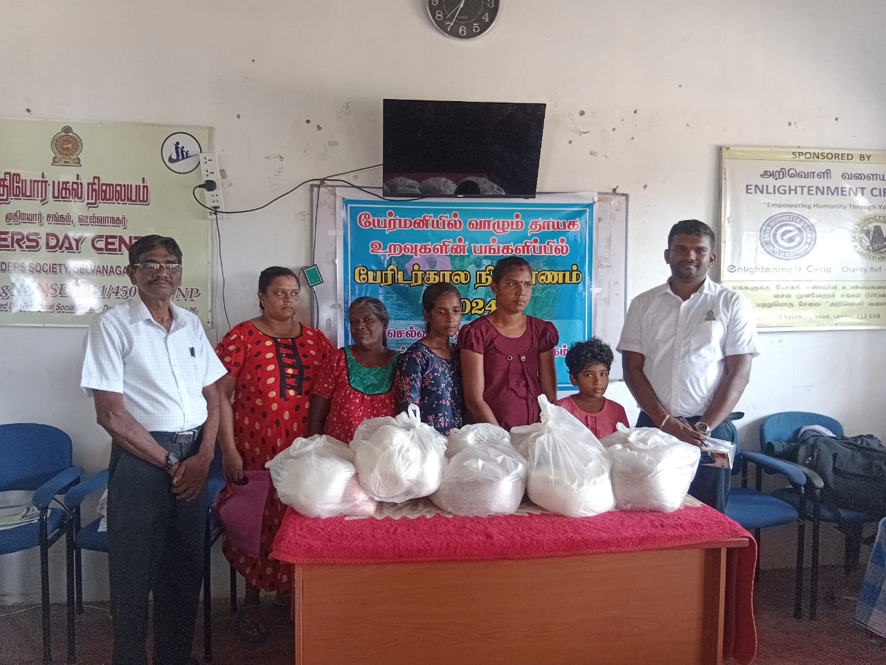 யேர்மனியில் வாழும் தாயக உறவுகளின் பங்களிப்புடன் “Help for Smile” அமைப்பினூடாக, கிளிநொச்சி மாவட்டத்தின், கரைச்சிப் பிரதேச செயலர் பிரிவுக்குட்பட்ட , செல்வாநகர்க் கிராமத்தில் இயற்கை அனர்த்தங்களால்ப் பாதிப்புற்ற மிக வறிய நிலையிலுள்ள தெரிவு செய்யப்பட்ட எண்பத்தைந்து (85) குடும்பங்களுக்கான உலருணவுப் பொதிகள் வழங்கிவைக்கப்பட்டது. முதியோர்கள், பெண்தலமைத்துவம், நாளாந்த நிரந்தரமற்ற கூலித் தொழிலாளர்கள், அதிகளவு சிறுவர்களையுடைய குடும்பங்களென முன்னுரிமைப்படுத்தப்பட்ட வகையிலே இவ் உதவிகள் கையளிக்கப்பட்டபோது, அம்மக்கள் யேர்மனிய வாழ் எமது உறவுகளுக்கும், Help for Smile அமைப்பினருக்கும் தமது நன்றியினை வெளிப்படுத்தினர்.