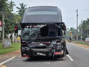 கொழும்பிலிருந்து பயணிகளை ஏற்றிச்சென்ற அதிசொகுசு பஸ் ஒன்று, சிறிய ரக உழவு இயந்திரத்துடன் மோதி விபத்திற்குள்ளானதில் 5 பேர் காயமடைந்துள்ளனர்.