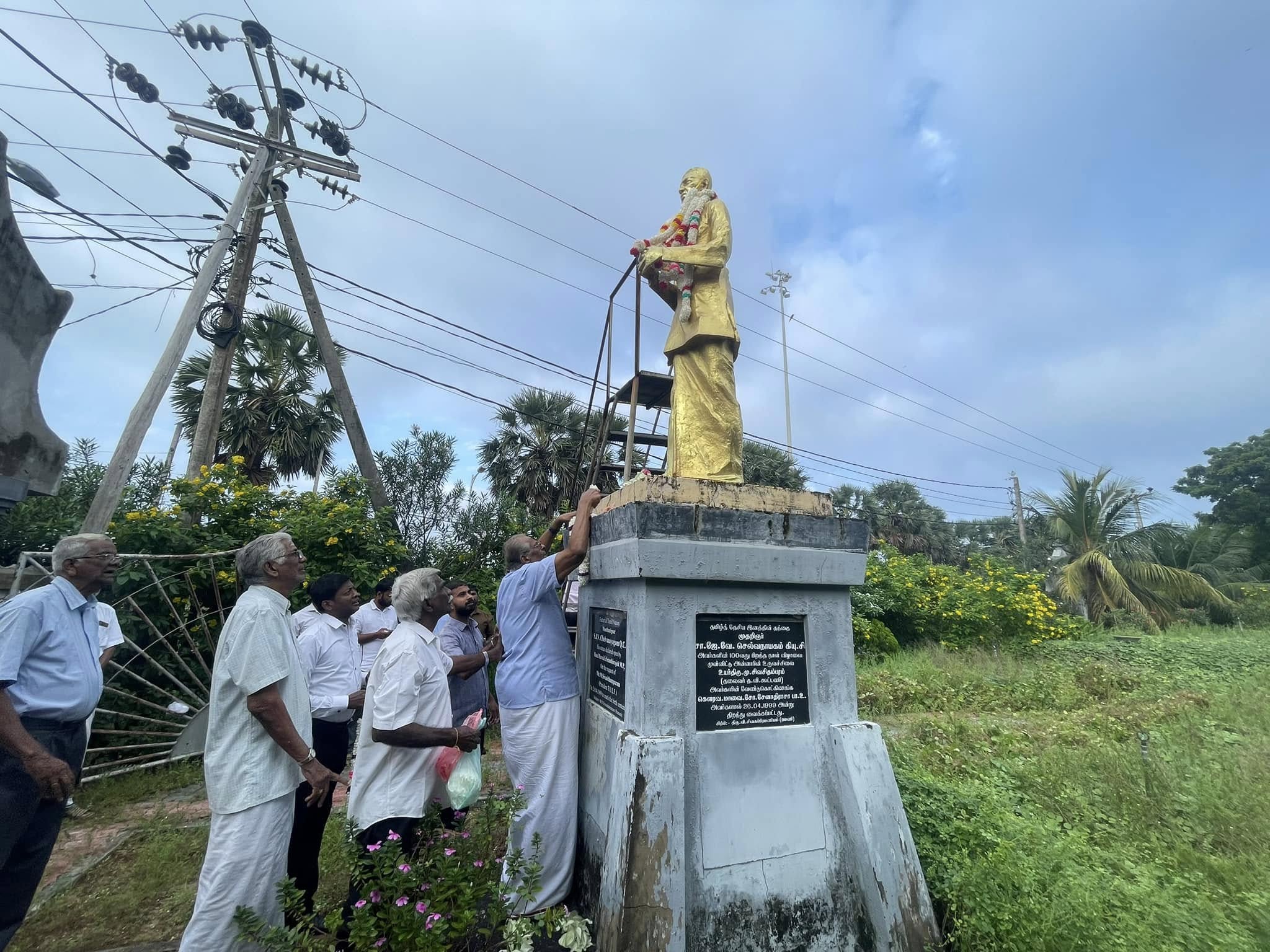 இலங்கை தமிழரசு கட்சி ஆரம்பிக்கப்பட்டு இன்று 75 ஆண்டுகள் பூர்த்தியாவதை முன்னிட்டு இலங்கை தமிழரசு கட்சியின் ஸ்தாபக தலைவர் தந்தை செல்வாவிற்கு இன்று புதன்கிழமை (18) யாழ். நகரில் உள்ள தந்தை செல்வா சதுக்கத்தில் அஞ்சலி செலுத்தப்பட்டது.