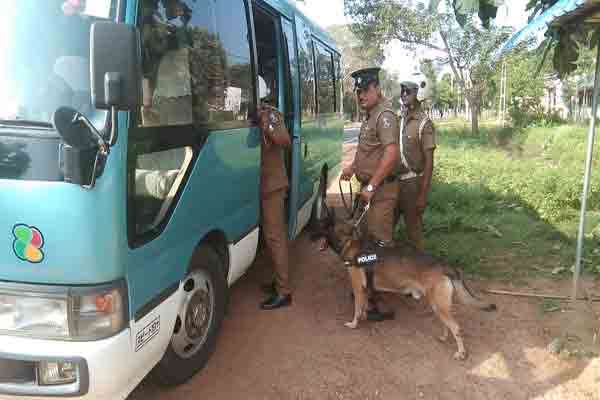 கிளிநொச்சி போக்குவரத்து பொலிஸார் மோப்ப நாய்களுடன் திடீர் சோதனைகளை முன்னெடுத்திருந்தனர்.