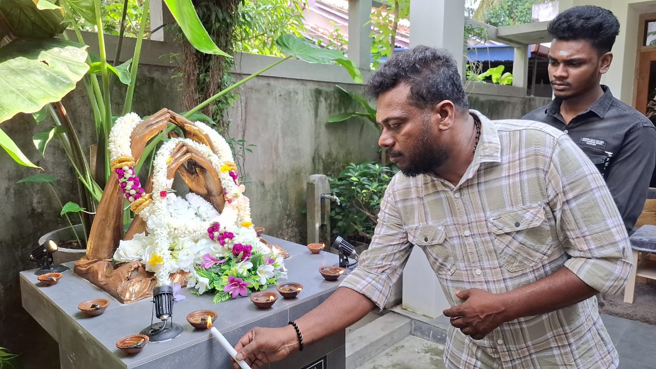 ஆழிப்பேரலையில் உயிர் நீத்த உறவுகளுக்கு “சுனாமி பேபி” அபிலாஷ் அவரது இல்லத்தில் அமைக்கப்பட்டுள்ள சுனாமி நினைவுத்தூபிக்கு முன்பாக இன்று (26) அஞ்சலி செலுத்தினார்.