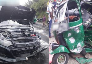 கார் மற்றும் முச்சக்கரவண்டி ஒன்றுடன் ஒன்று மோதியதில் இந்த விபத்து இடம்பெற்றுள்ளது.