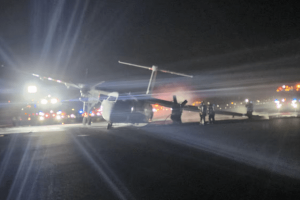 குறித்த ஏர் கனடா விமானத்தின் கியர் செயலிழந்ததால் விமானத்தின் இறக்கை ஓடுதளத்தில் உரசி திடீரென தீப்பிடித்துள்ளது.