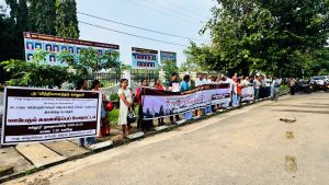 முல்லைத்தீவு – முள்ளியவளை வித்தியானந்தா கல்லூரி அதிபர் கல்லூரியின் வளர்ச்சியை சீர்குலைப்பதாகவும், மாணவர்களின் கல்வி வளர்ச்சிக்கு தடையாக இருப்பதாகவும், அவரை உடனடியாக இடமாற்றம் செய்யக்கோரி பழைய மாணவர் சங்கம், பாடசாலை அபிவிருத்திச்சங்கம், பெற்றோர்கள் இணைந்து இன்றையதினம் காலை 7.30 மணியளவில் பாடசாலை நுழைவாயிலில் போராட்டம் ஒன்று முன்னெடுக்கப்பட்டிருந்தது.