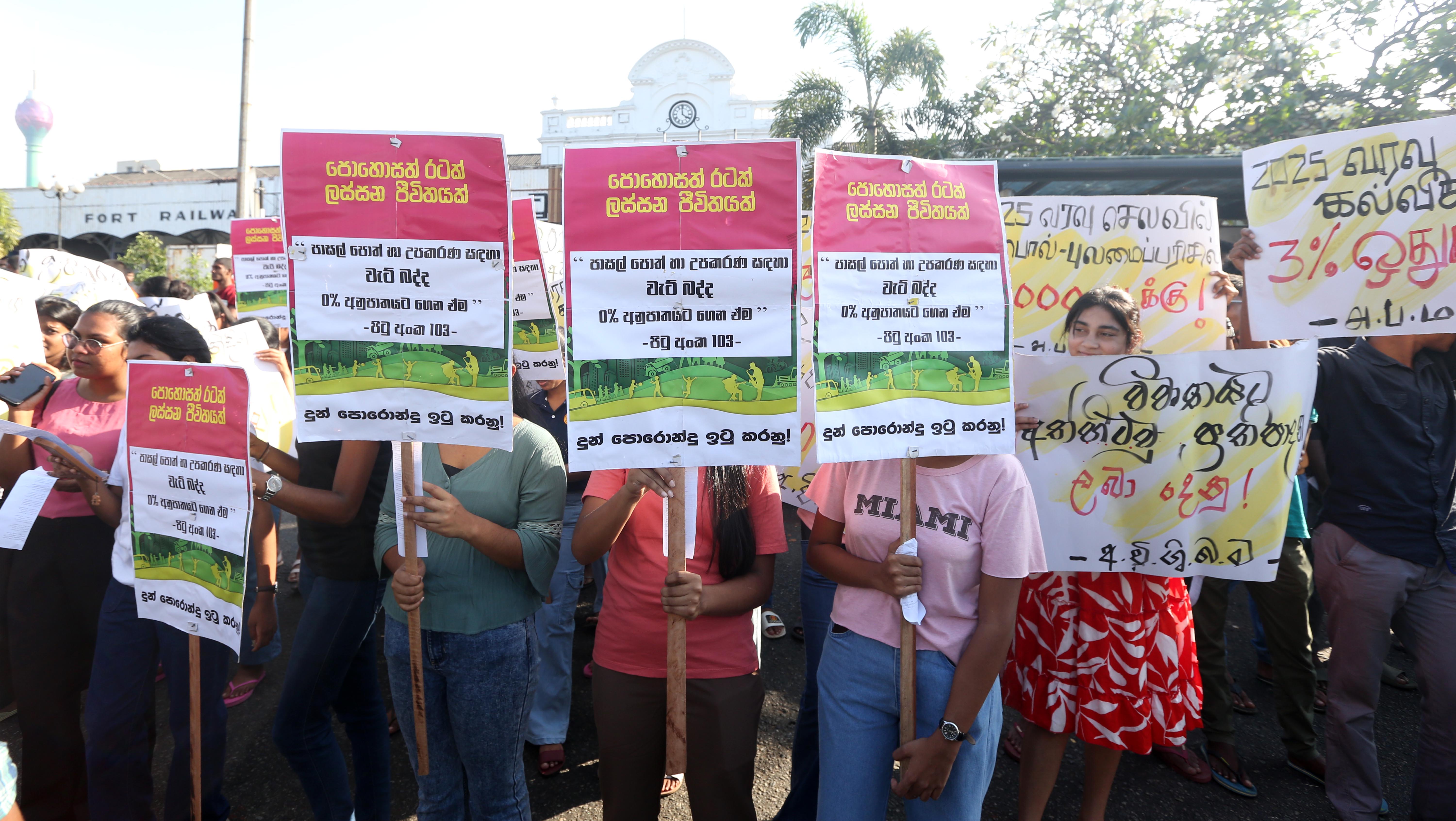 பெறுமதிசேர் வரிக்குறைப்பு உள்ளிட்ட பல்வேறு விடயங்களை முன்வைத்து அரசாங்கத்துக்கு எதிராக அனைத்துப் பல்கலைக்கழக மாணவர் ஒன்றியத்தினரால் புதன்கிழமை (08) கொழும்பு, கோட்டை புகையிரத நிலையத்துக்கு முன்பாக மேற்கொள்ளப்பட்ட கவனயீர்ப்புப்போராட்டத்தின்போது பிடிக்கப்பட்ட படங்கள்.