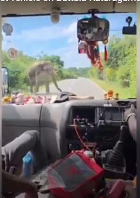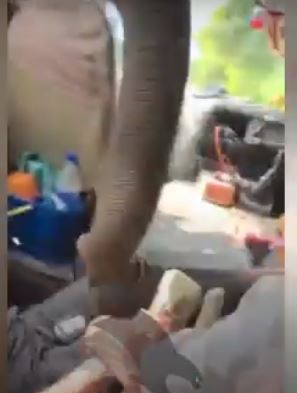 இந்த சம்பவம் குறித்து காணொளி ஒன்று வெளியாகியுள்ளது. அதில், சுற்றுலா பயணிகள் சென்ற வாகனத்தை வழிமறிக்கிறது. அதன் பின்பு, நிறுத்தப்பட்ட வாகனத்தின் ஜன்னல் ஊடாக தும்பிக்கையை திணித்து உணவை தேடுகிறது.
