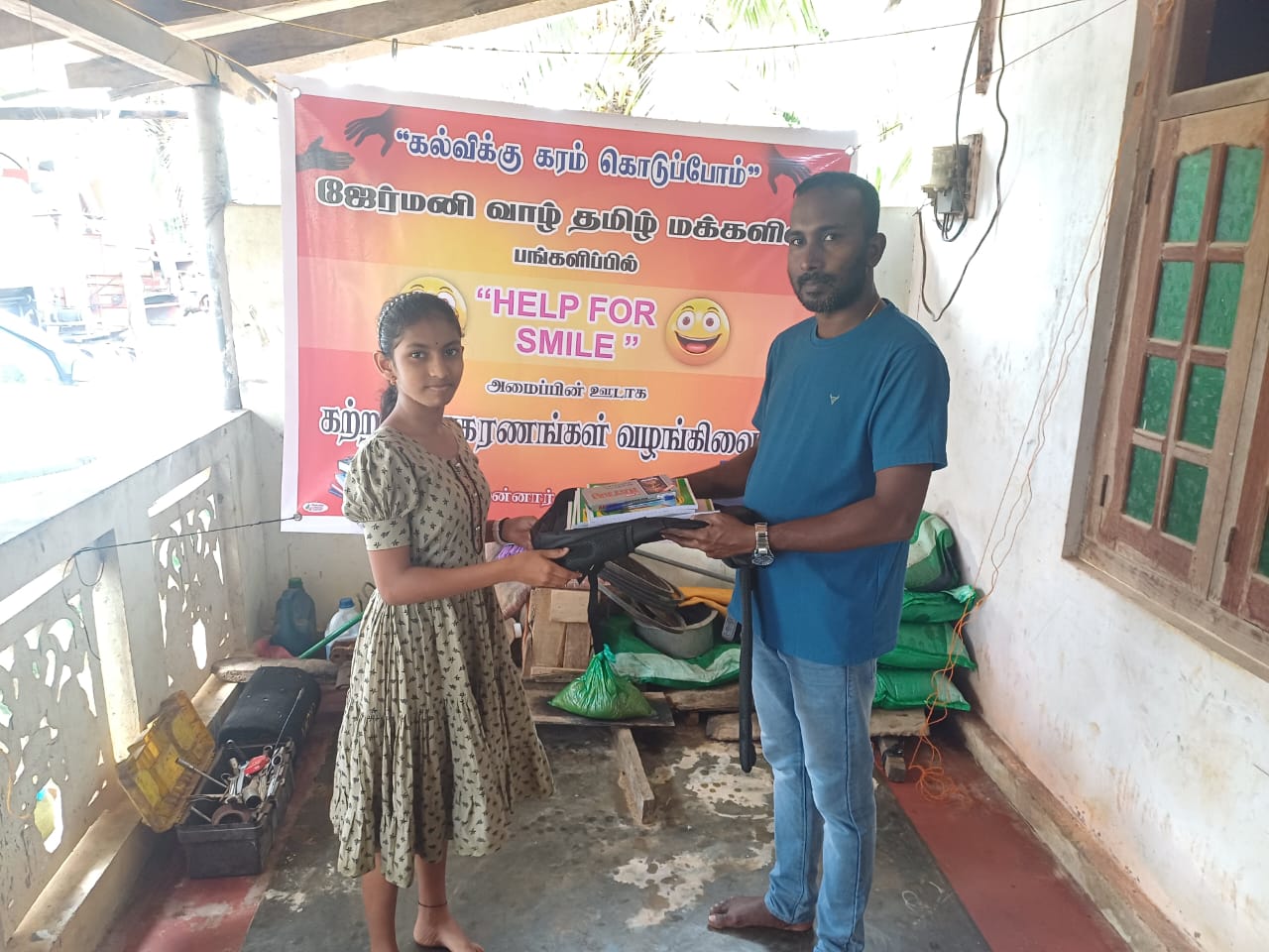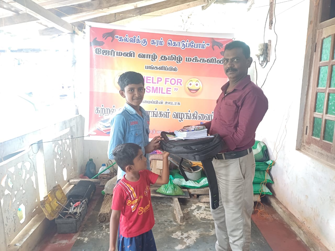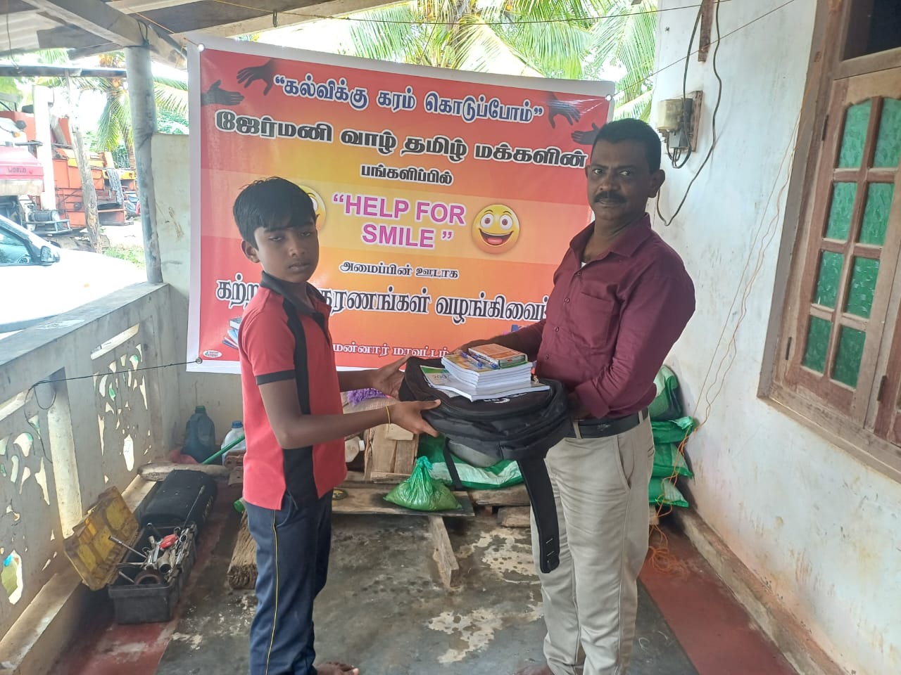 கல்விக்கு கரம் கொடுப்போம் எனும் செயற்திட்டதினூடாக ஜேர்மனி வாழ் தமிழ்மக்களின் பங்களிப்பில் Help for smile அமைப்பின் ஊடாக 12.01.2024 இன்று மன்னார் மாவட்டம் பெரியபன்டிவிரிச்சானில் வசிக்கும் கற்றல் தேவையுடைய 25 மாணவர்களுக்கு கற்றல் உபகரணங்கள் வழங்கிவைக்கப்பட்டது.