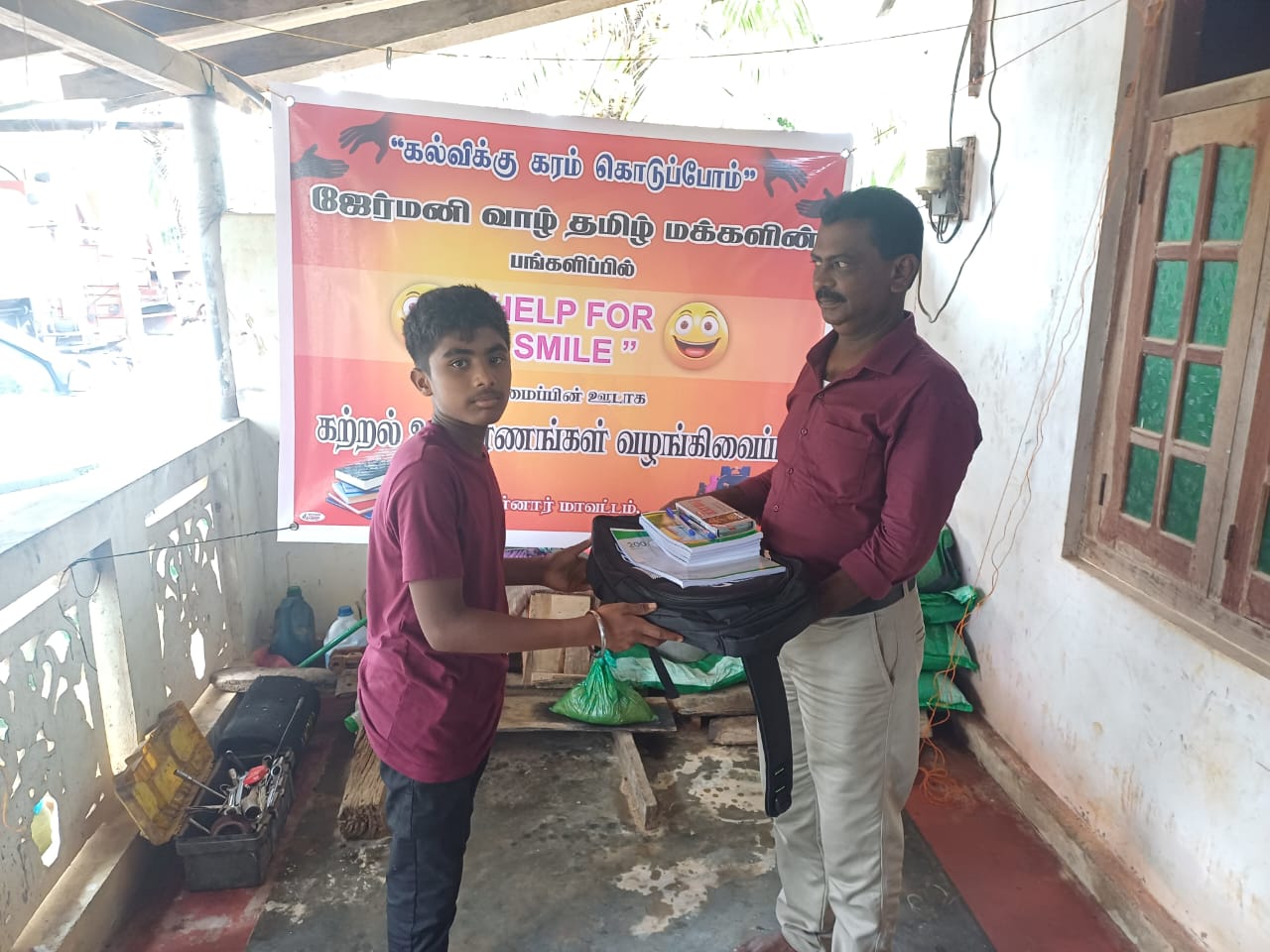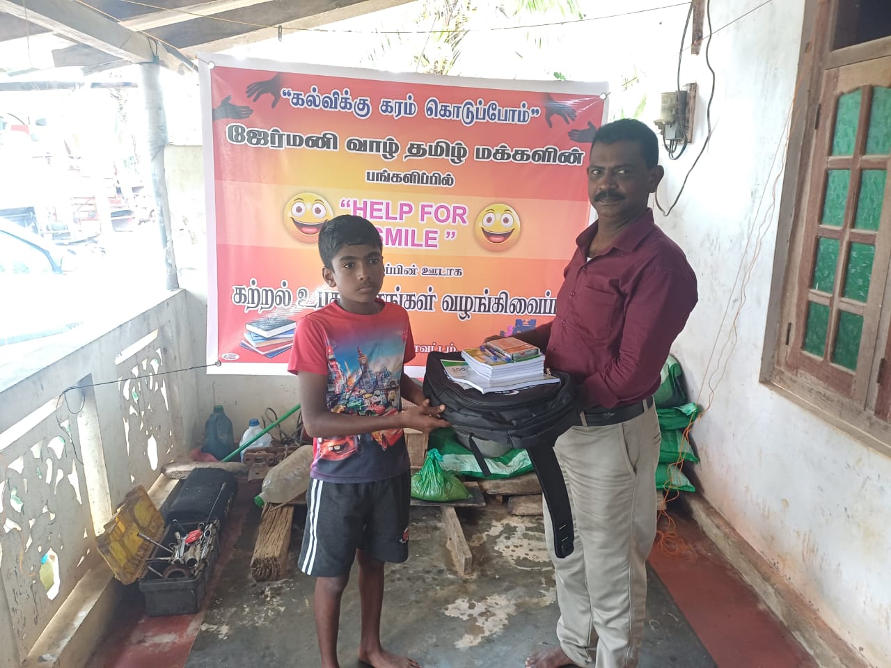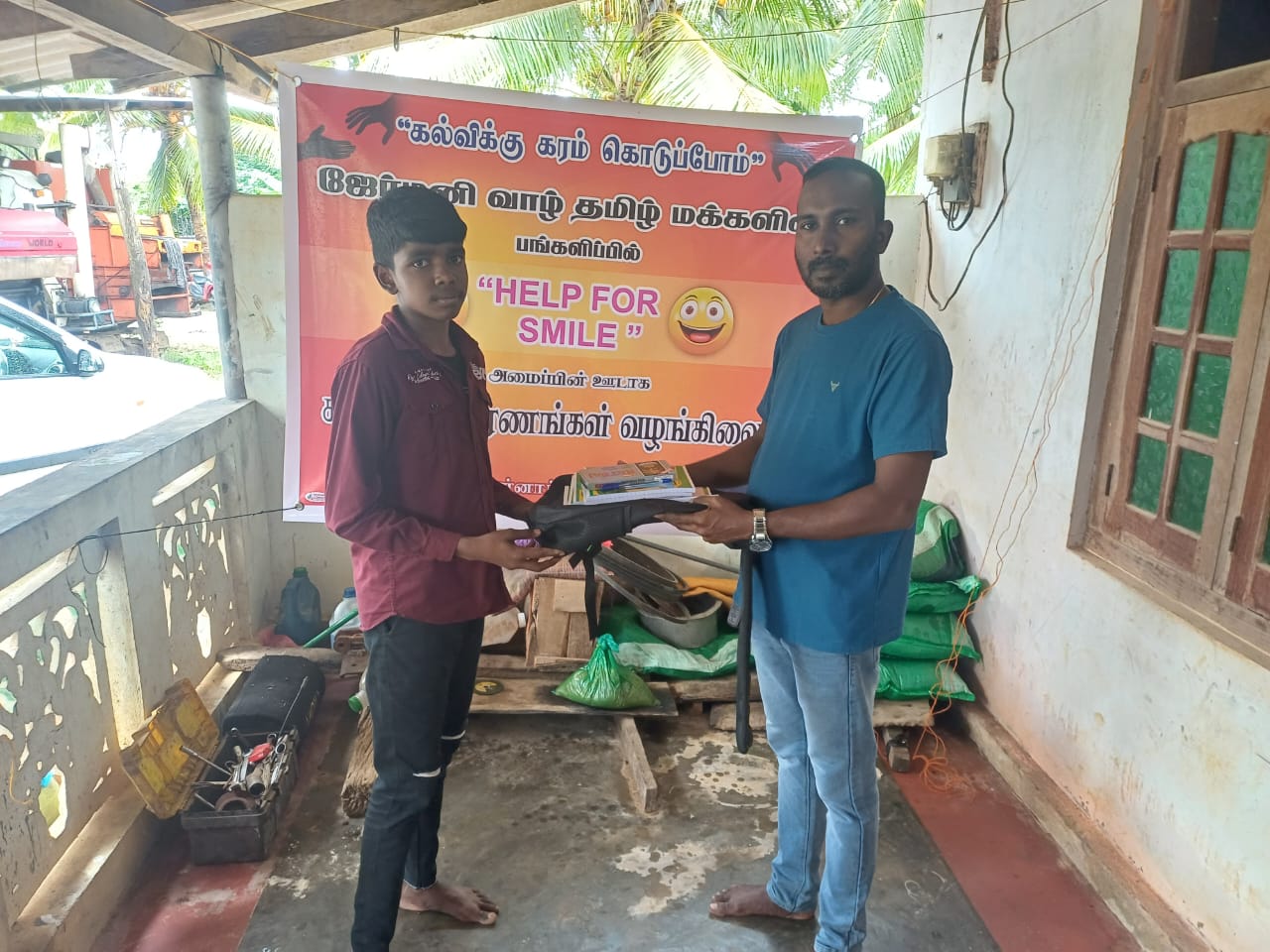 கல்விக்கு கரம் கொடுப்போம் எனும் செயற்திட்டதினூடாக ஜேர்மனி வாழ் தமிழ்மக்களின் பங்களிப்பில் Help for smile அமைப்பின் ஊடாக 12.01.2024 இன்று மன்னார் மாவட்டம் பெரியபன்டிவிரிச்சானில் வசிக்கும் கற்றல் தேவையுடைய 25 மாணவர்களுக்கு கற்றல் உபகரணங்கள் வழங்கிவைக்கப்பட்டது.