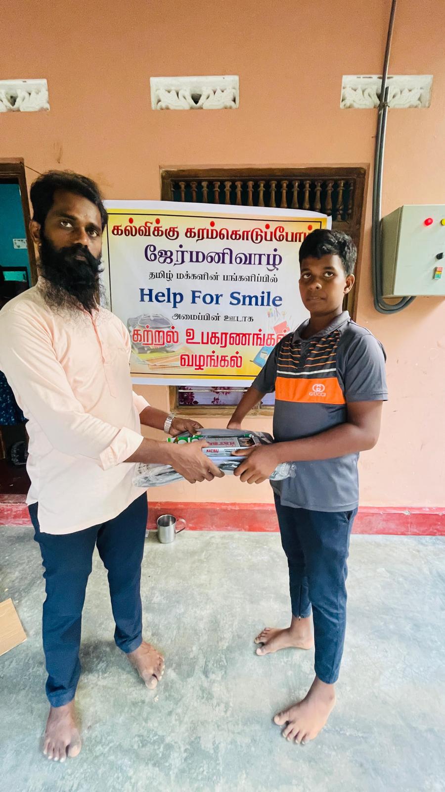 கல்விக்குக் கரம் கொடுப்போம் செயற்திட்டத்தின் ஊடக ஜேர்மனி வாழ் தமிழ்மக்களின் பங்களிப்பில்Help For Smile அமைப்பின் ஊடாக 13.01.2025 இன்று கிளிநொச்சி மாவட்டம் கிருஸ்ணபுரம் கிராமத்தில் வசிக்கும் கற்றல் தேவையுடைய 25 மாணவர்களுக்கு கற்றல் உபகரணங்கள் வழங்கிவைக்கப்பட்டது.