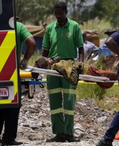 திங்கட்கிழமை முதல் மீட்பு நடவடிக்கைகளில் ஈடுபட்டுள்ள தென்னாபிரிக்க மீட்பு பணியாளர்கள் சிகப்பு நிற கூண்டு போன்ற ஒன்றை தங்கச்சுரங்கத்திற்குள் இறக்கி 60 பேரின் உடல்களை மீட்டுள்ளதுடன் 92 பேரை உயிருடன் காப்பாற்றியுள்ளனர்.உள்ளே மேலும் எத்தனை பேர் இருக்கின்றனர் என்பது தெரியாது என தெரிவித்துள்ள பொலிஸார் நூற்றுக்கணக்கானவர்கள் இருக்கலாம் என தெரிவித்துள்ளனர்.