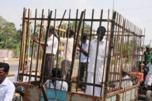 வலிந்து காணாமல் ஆக்கப்பட்டவர்களை விடுதலை செய்யக் கோரி தமிழ்தேசியக் கூட்டமைப்பின் கிளிநொச்சிக் கிளையின் ஏற்பாட்டில் இடம்பெற்ற ஊர்வலத்தில் காணாமல் ஆக்கப்பட்டவர்கள் மற்றும் அரசில் கைதிகளை சித்தரிக்கும் வகையில் ஊர்திகளும் காணப்பட்டன.