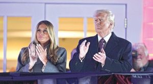நடனம் ஆடினார் ட்ரம்ப்: ட்ரம்ப் பதவியேற்பு விழா கொண்டாட்டங்கள் அமெரிக்காவில் நேற்று முன்தினமே தொடங்கிவிட்டன. விர்ஜினியா மாகாணத்தில் உள்ள ட்ரம்ப் நேசஷனல் கோல்ப் கிளப்பில் நேற்று முன்தினம் இரவு நடைபெற்ற விருந்து நிகழ்ச்சியில் அவரது அமைச்சரவை உறுப்பினர்கள் உட்பட ட்ரம்ப் விருந்தினர்கள் 500 பேர் பங்கேற்றனர். இங்கு நடைபெற்ற கொண்டாட்ட நிகழ்ச்சிகளை ட்ரம்ப் மற்றும் அவரது மனைவி மெலானியா ஆகியோர் கோல்ப் கிளப் பால்கனியில் இருந்து கண்டு ரசித்தனர். அங்கு நடைபெற்ற இசை நிகழ்ச்சிகளை ட்ரம்ப் ரசித்தார். விருந்தினர்களுடன் சேர்ந்து தனது வழக்கமான ஸ்டைலில் ட்ரம்ப் நடனம் ஆடினார்.