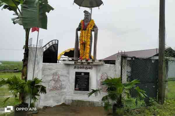 நீதிமன்ற தடை உத்தரவு பெறப்பட்ட நிலையில் சர்ச்சைக்கு மத்தியில் திருவள்ளுவர் சிலை கொட்டும் அடை மழைக்கும் மத்தியில் திரை நீக்கம் செய்து வைக்கப்பட்டுள்ளது.