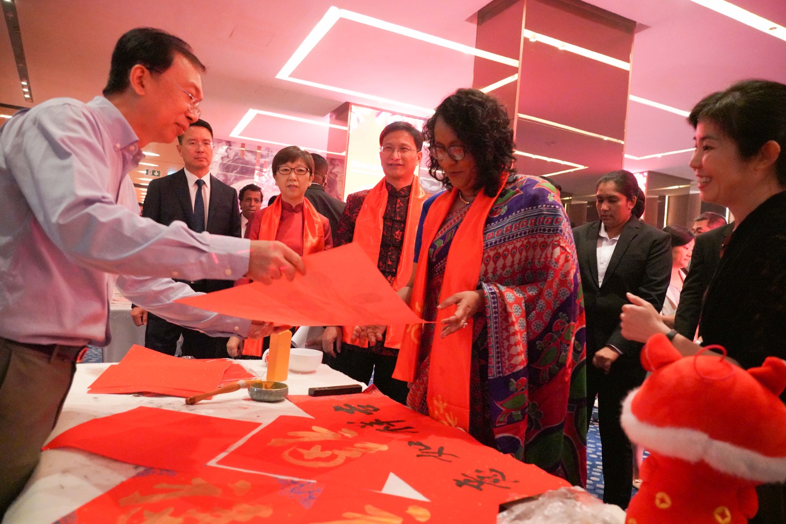 சீன கலாசார அம்சங்களால் அலங்கரிக்கப்பட்ட இந்த நிகழ்வில் முன்னாள் ஜனாதிபதி மைத்ரிபால சிறிசேன, முன்னாள் பிரதமர் தினேஷ் குணவர்தன, கைத்தொழில் அமைச்சர் சுனில் ஹந்துன்நெத்தி நிதி மற்றும் திட்டமிடல் பிரதியமைச்சர் கலாநிதி ஹர்ஷன சூரியப்பெரும உள்ளிட்ட அரசியல் பிரமுகர்கள், இலங்கைக்கான சீனத் தூதுவர் Qi Zhenhong, பிரதமரின் செயலாளர் பிரதீப் சபுதந்திரி உட்பட இலங்கையர்கள் மற்றும் சீனப் பிரஜைகள் அடங்கிய குழுவினர் கலந்துகொண்டனர்.