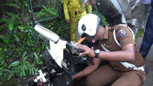கார் ஒன்று வீதியை விட்டு விலகி மோட்டார் சைக்கிள் மீது மோதியதில் இந்த விபத்து இடம்பெற்றுள்ளது.