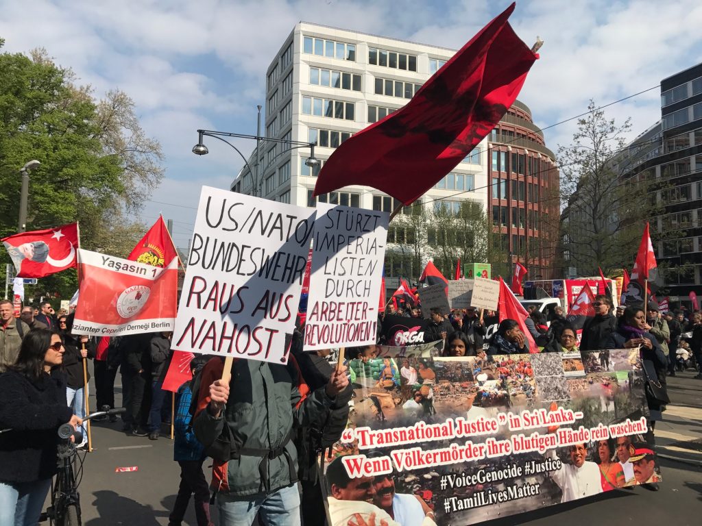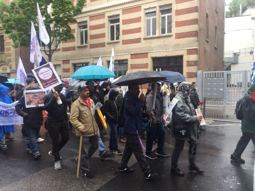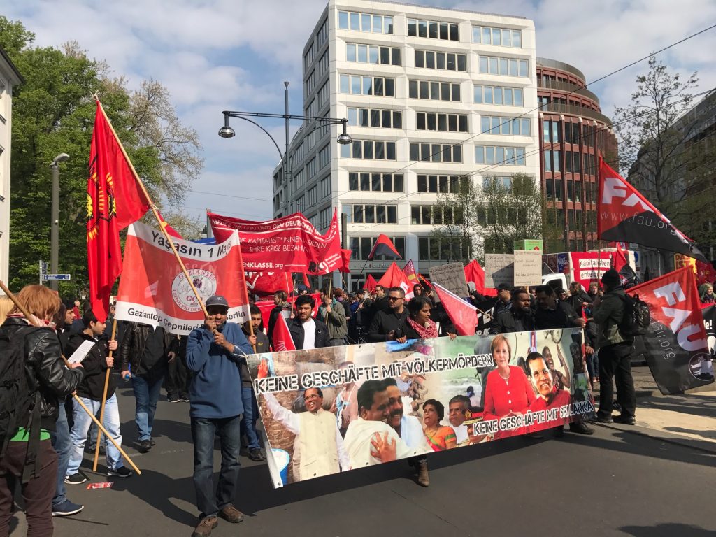 மே நாள் அல்லது மே தினம் எனப்படும் உலகத் தொழிலாளர் தினம் ஆண்டுதோறும் மே முதலாம் திகதி (மே 1) உலகளாவிய ரீதியில் கொண்டாடப்படுவதாகும்.சர்வதேச தொழிலாளர் தினத்தை முன்னிட்டு யேர்மனியில் பல நகரங்களில் தொழிற்சங்கத்தால் முன்னெடுக்கப்பட்ட பேரணிகளில் தமிழ் மக்களும் கலந்துகொண்டு தமிழின அழிப்புக்கு நீதி கோரும் வகையில் கவனயீர்ப்பை ஏற்படுத்தினர். தமிழின அழிப்பை எடுத்துரைக்கும் பதாதைகளை தாங்கியவண்ணம் , யேர்மன் மொழியில் துண்டுப்பிரசுரங்களை வழங்கி பல்லின சமூகத்திடம் விழிப்புணர்வை மேற்கொண்டனர்.ஒரு சில நகரங்களில் தாயக உறவுகளின் வாழ்வாதாரத்துக்காக தமிழீழ உணவக நிலையங்கள் அமைக்கப்பட்டதும் குறிப்பிடத்தக்கது.