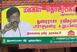 புதுக்குடியிருப்பு நகருக்கு அருகாமையில், புதுக்குடியிருப்பு – இரணைப்பாலைவீதியில் அமைந்துள்ள நாடாளுமன்ற உறுப்பினர் ரவிகரன் அவர்களது மக்கள் தொடர்பகமே அவ்வாறு திறந்துவைக்கப்பட்டுள்ளது.