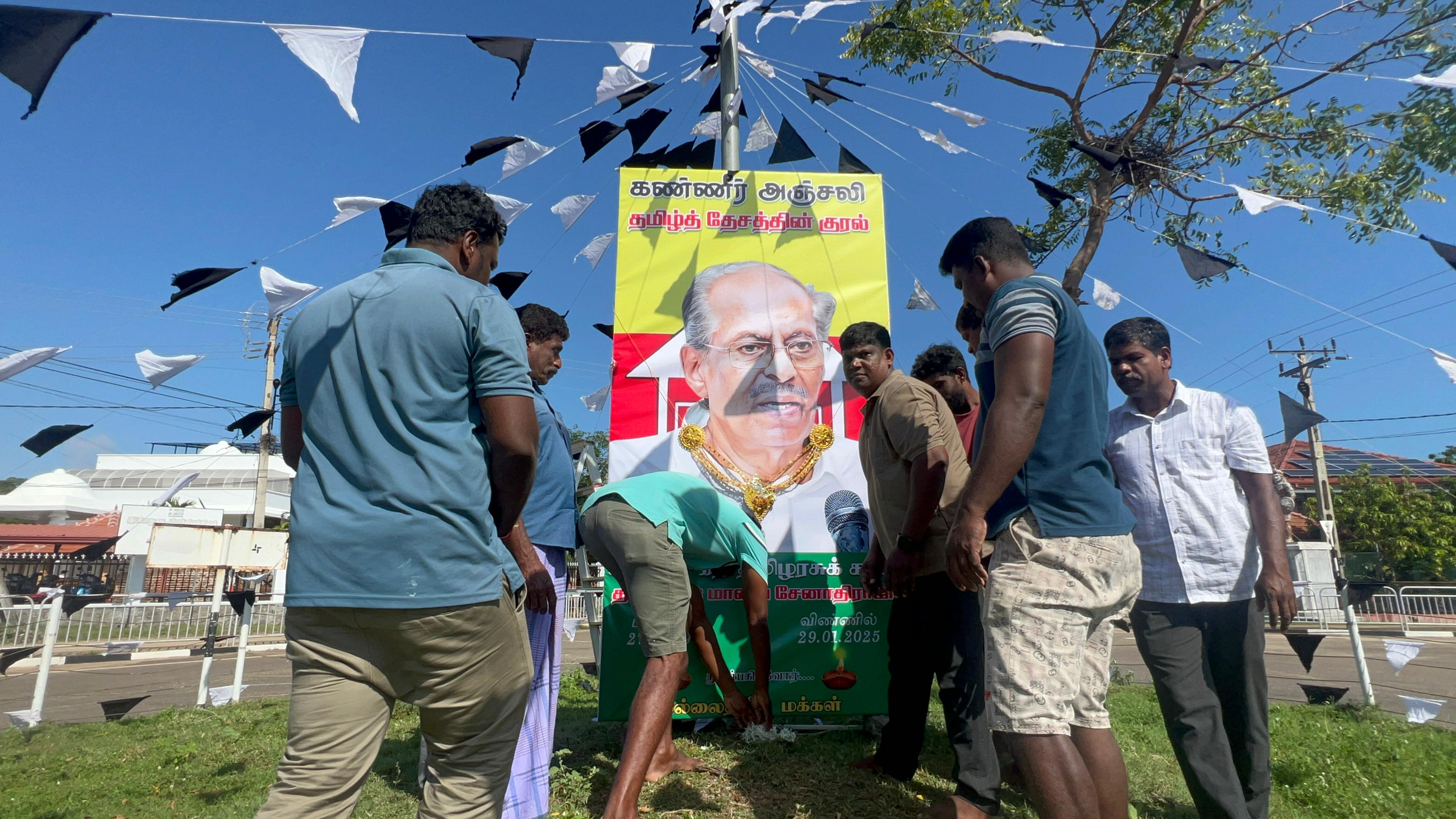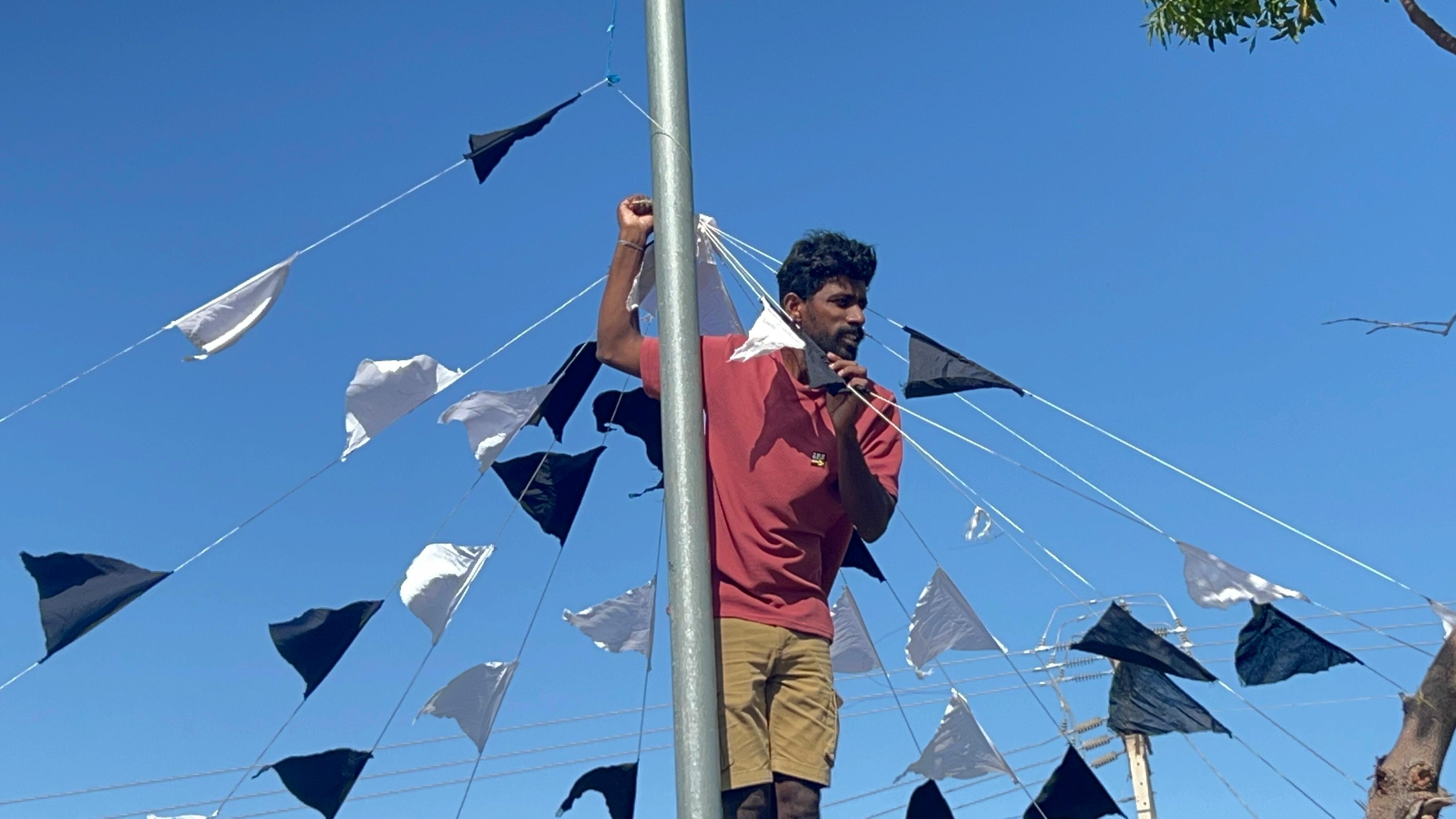 துக்கத்தை பிரதிபலிக்கும் வகையில் முல்லைத்தீவு பிரதான சுற்றுவட்டப்பாதை வளாகம் கறுப்பு மற்றும் வெள்ளைக் கொடிகளால் அலங்கரிக்கப்பட்டுள்ளது.