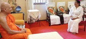 ஐக்கிய தேசியக் கட்சியின் பொதுச் செயலாளர் தலதா அத்துகோரள நேற்று (30) மல்வத்து மகா விகாரைக்குச் சென்று ஆசிர்வாதம் பெற்ற சந்தர்ப்பத்திலேயே மகாநாயக்க மேற்கண்டவாறு தெரிவித்துள்ளார்.