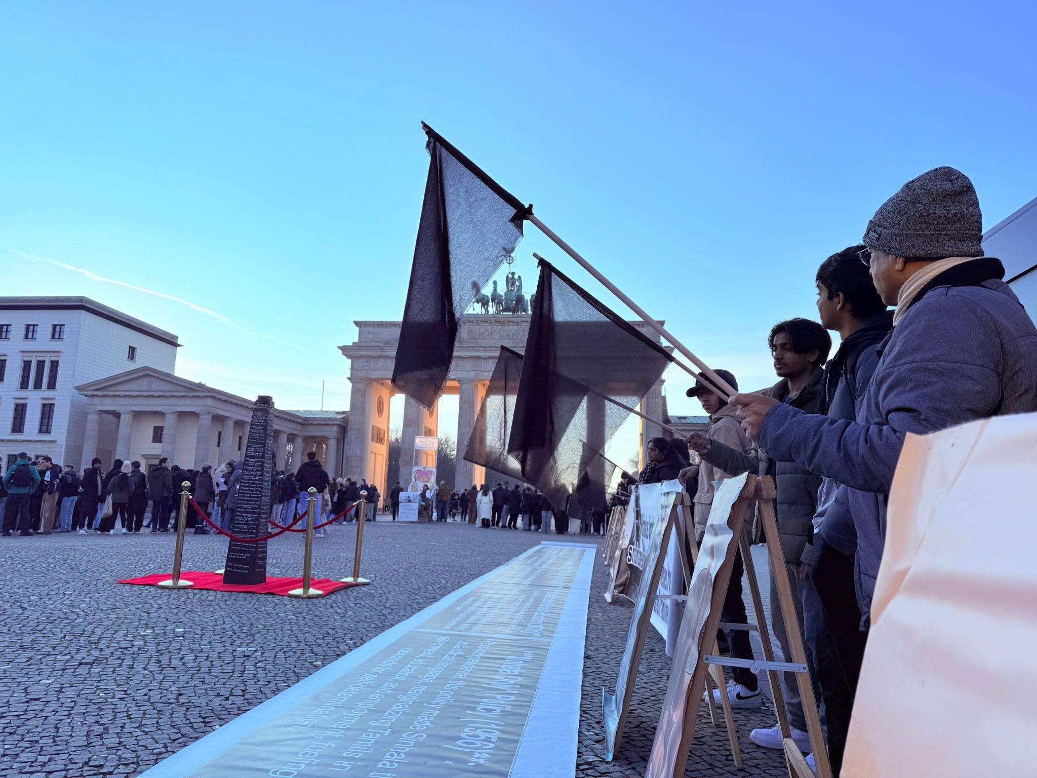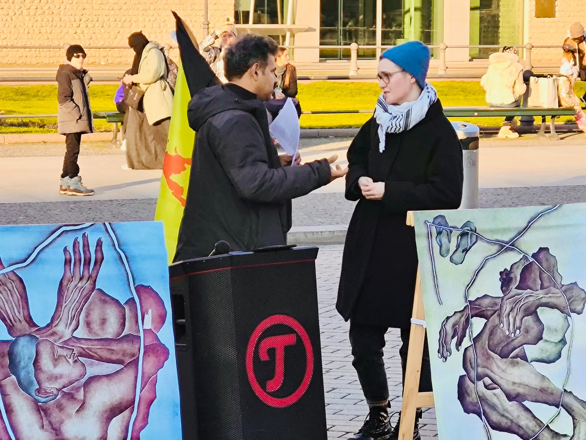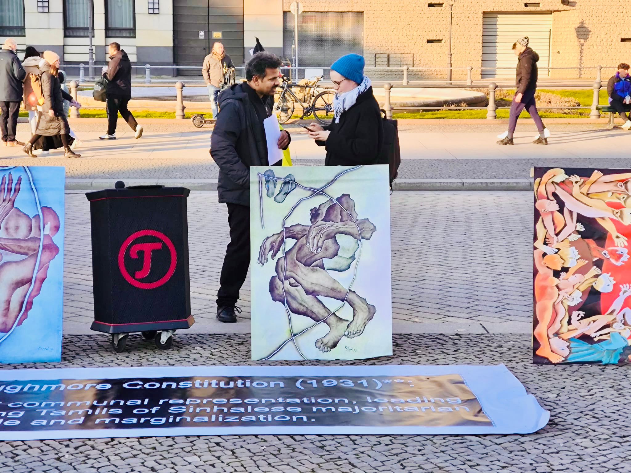 யேர்மன் தலைநகரத்தில் பிரசித்திபெற்ற Brandenburger Tor வளாகத்தில் வேற்றின மக்களுக்கு தமிழின அழிப்பை எடுத்துரைக்கும் முகமாக ஓவியர் புகழேந்தி ஐயாவின் தமிழின கண்காட்சி சிறப்பாக ஒழுங்குசெய்யப்பட்டது.