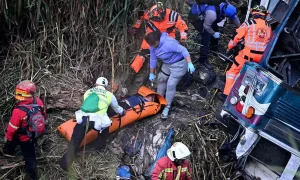 மத்திய அமெரிக்காவில் உள்ள குவாத்தமாலா என்கிற நாட்டின் புறநகர்ப் பகுதியில் நடந்த பேருந்து விபத்தில் 30க்கும் மேற்பட்டோர் உயிரிழந்தனர், பலர் காயமடைந்துள்ளனர்.குவாத்தமாலா நகரில் பேருந்து ஒன்று நெடுஞ்சாலை பாலத்தில் இருந்து பள்ளத்தாக்கில் கவிழ்ந்து விபத்துக்குள்ளானது.