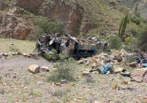 பொலிவியாவில் தென்மேற்கு மாவட்டமான யோகல்லாவில் பயணித்துக்கொண்டிருந்த பஸ் சுமார் 2,625 அடி பள்ளத்தில் கவிழ்ந்து விபத்துக்குள்ளாகியுள்ளது.