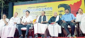 இதேபோல் பள்ளிக்கல்வித் துறை அமைச்சர் அன்பில் மகேஸ், இந்திய கம்யூனிஸ்ட் கட்சி மாநிலச் செயலாளர் முத்தரசன், மார்க்சிஸ்ட் கம்யூனிஸ்ட் கட்சி மாநிலச் செயலாளர் பெ.சண்முகம், விடுதலைச் சிறுத்தைகள் கட்சித் தலைவர் திருமாவளவன், இந்திய யூனியன் முஸ்லீம் லீக் தலைவர் காதர் மொகிதீன், தமிழக வாழ்வுரிமைக் கட்சித் தலைவர் தி.வேல்முருகன் உள்ளிட்டோர் பேசினர்.