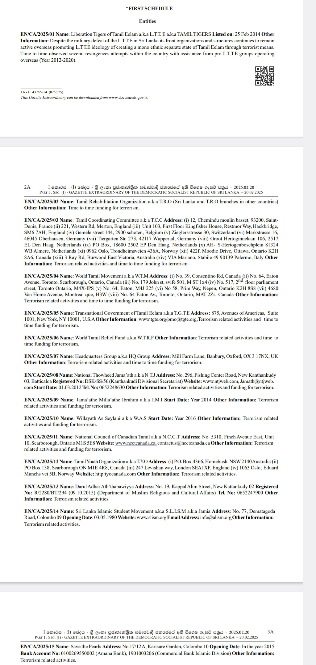 மேலும், பயங்கரவாதத்துடன் தொடர்புடைய 222 நபர்களின் பெயர் பட்டியலையும் அரசாங்கம் மீண்டும் உறுதிப்படுத்தியுள்ளது.