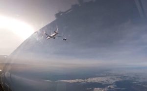 அமெரிக்க விமானம் ஒன்று இரண்டு இத்தாலிய போர் விமானங்கள் சூழ பறந்த காட்சிகள் அடங்கிய வீடியோ இணையத்தில் வைரலாகி வருகிறது.