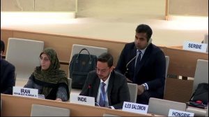 பாகிஸ்தானின் இத்தகைய தொடர் குற்றச்சாட்டுகளால் ஐ.நா மனித உரிமை ஆணையத்தின் நேரம் தொடர்ந்து வீணடிக்கப்படுகிறது. நிலையற்ற தன்மையுடனும், உலக நாடுகளின் பொருளாதார உதவியுடனும் உயிர்வாழும் ஒரு தோல்வியுற்ற அரசால் ஐநா மனித உரிமை ஆணையத்தின் நேரம் தொடர்ந்து வீணடிக்கப்படுவது துரதிர்ஷ்டவசமானது. பாகிஸ்தான் இங்கு பேசும் மொழி பாசாங்குத்தனமானது. அந்த நாட்டின் நடவடிக்கைகள் மனிதாபிமானமற்ற தன்மை கொண்டவை. அதோடு, அதன் நிர்வாகம், திறமையற்றது.