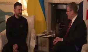 இந்நிலையில், உக்ரைன் அதிபர் ஜெலன்ஸ்கி இங்கிலாந்து சென்றார். அங்கு அவரை பிரதமர் கெய்ர் ஸ்டார்மர் உற்சாகமாக வரவேற்றார். அப்போது அங்கிருந்தோர் உக்ரைனுக்கு ஆதரவாக கோஷம் எழுப்பினர். உங்கள் ஆதரவுக்கு நன்றி என அதிபர் ஜெலன்ஸ்கி நெகிழ்ச்சியுடன் தெரிவித்தார்.