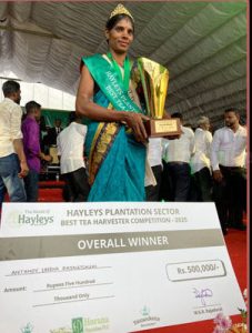 இதில் தலவாக்கலை – பெருந்தோட்ட நிறுவத்தின் கீழ் இயங்கும் கிரேட்வெஸ்டன் தோட்டத்தைச் சேர்ந்த மூன்று பிள்ளைகளின் தாயான அந்தனி இரேஷா ராஜலட்சுமி வழங்கப்பட்ட நேரத்தினை சரிவர பயன்படுத்தி போட்டி விதிமுறைகள் மற்றும் நிபந்தனைகளுக்கு அமைய 8 கிலோகிராம் தரமான தேயிலை பறித்தே முதலிடத்தை பிடித்து சாதனை படைத்துள்ளார்.
