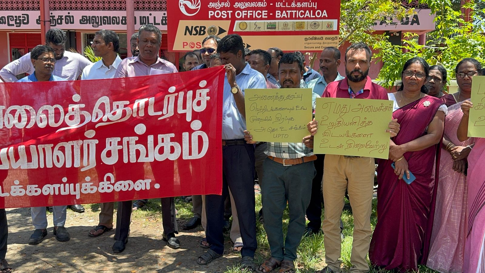 பல்வேறு கோரிக்கைகளை வலியுறுத்தி தபால் திணைக்கள ஊழியர்கள் இன்று வெள்ளிக்கிழமை (14) மட்டக்களப்பு பிரதான தபால் நிலையத்திற்கு முன்பாக கவனயீர்ப்பு போராட்டம் ஒன்றை முன்னெடுத்தனர்.