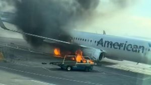 விமானம் கேட்டிற்கு வந்த பிறகு இயந்திரம் தொடர்பான சிக்கலை சந்தித்ததாக அமெரிக்கன் ஒரு அறிக்கையில் தெரிவித்துள்ளது. விமானம் எப்போது தீப்பிடித்தது என்பது குறித்து உடனடியாக எந்த விளக்கமும் இல்லை.