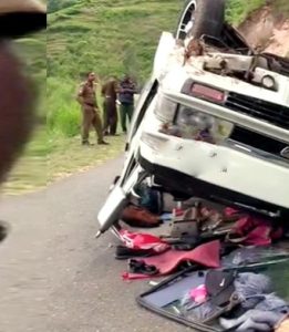 போம்புரு எல்ல நீர்வீழ்ச்சியை பார்வையிடுவதற்காக 15 பேர் கொண்ட குழுவுடன் சுற்றுலாச் சென்ற வேன் ஒன்றே இவ்வாறு விபத்துக்குள்ளாகியுள்ளது.
