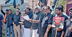 இதேபோல் பாஜக தலைவர்கள் சாலிகிராமத்தில் தமிழிசை, வேளச்சேரியில் கரு.நாகராஜன் உள்ளிட்டோரும் கருப்புக் கொடி ஆர்ப்பாட்டத்தில் ஈடுபட்டனர்.
