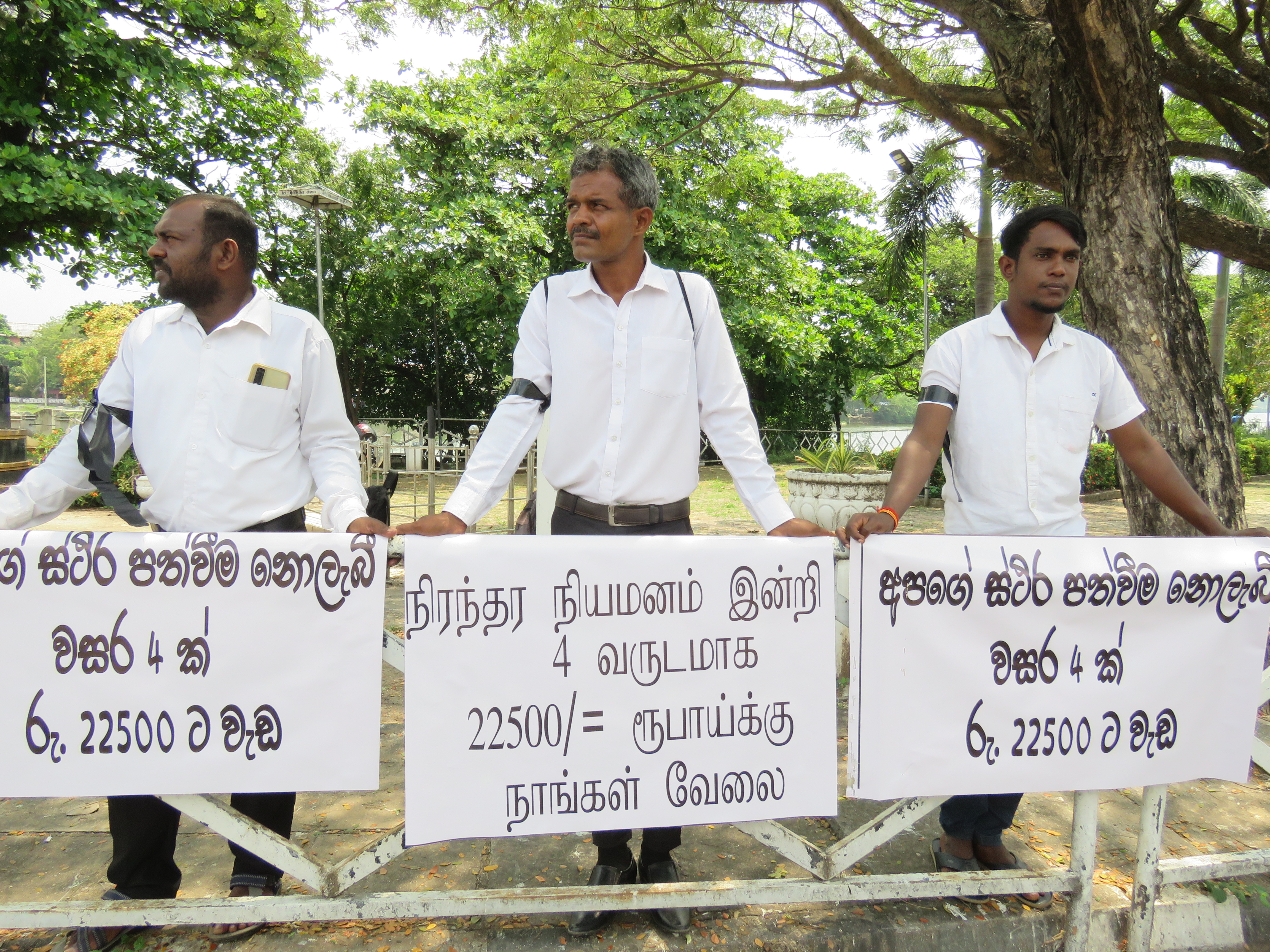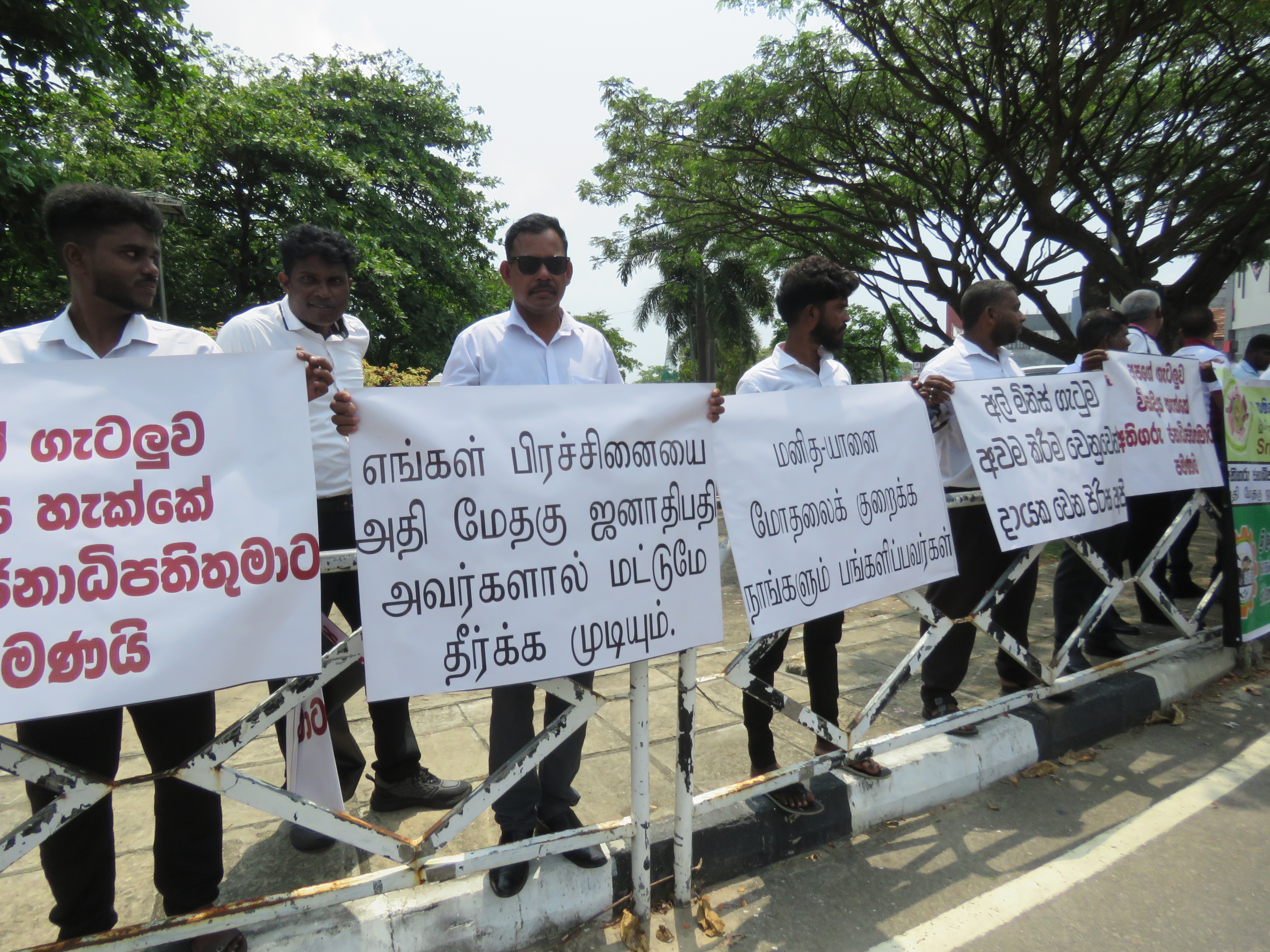 அவர்கள் பணிக்கு அமர்த்தப்பட்டு சுமார் 5 வருடங்கள் ஆகியும் அடிப்படை வசதியின்றி நிரந்தரம் நியமனம் இன்றி இரவு பகலாக இயன்றவரை மாதாந்தம் 22500 ரூபாய் பயிற்சி கொடுப்பனவை மாத்திரம் பெற்று கொண்டு கடமையாற்றி வருவதாகவும் மனித யானை மோதல்களைக் குறைக்க நாங்களும் பங்களிப்பவர்கள், எங்கள் பிரச்சனை அதிமேதகு ஜனாதிபதிக்கு, எங்கள் பிரச்சனையை ஜனாதிபதி அவர்களால் மாத்திரமே தீர்க்க முடியும், நிரந்தர நியமனம் இன்றி கடந்த 4 வருடங்களாக மாதம் 22500 ரூபாவுக்கு நாங்கள் வேலை, போன்ற சுலோகங்கள் ஏந்தியவாறு ஆர்ப்பாட்டத்தில் ஈடுபட்டனர்.
