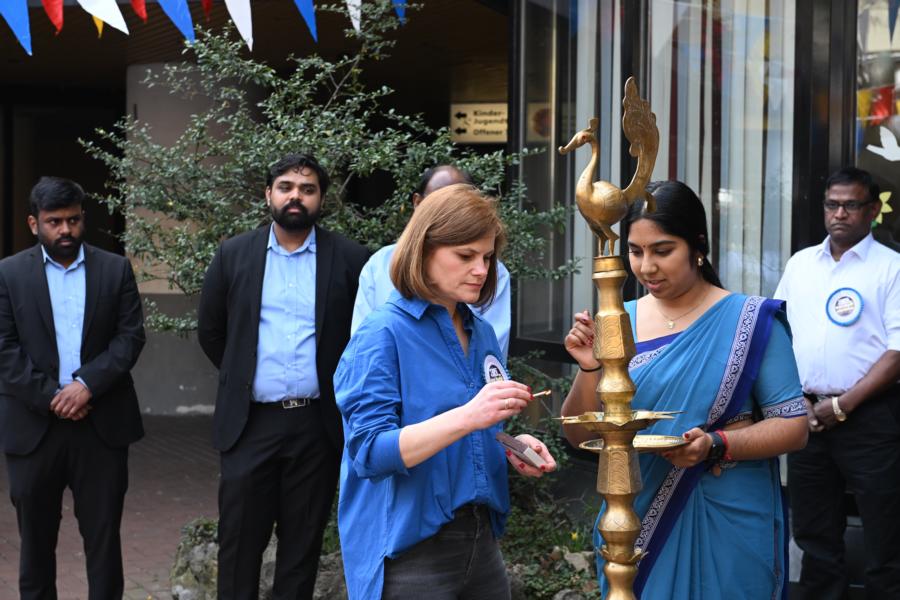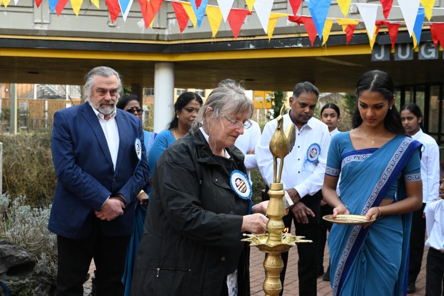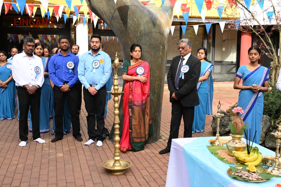 09:30மணிக்கு என்னப்பெற்றால் நகர இளைஞர் விவகாரத்துறை மேலாளர் திருமதி றுசா கால்னரபாக் அவர்கள் பொதுச்சுடர் ஏற்றிவைத்தமையைத் தொடர்ந்து, சிறப்பு விருந்தினர்களான பசுமைக் கட்சியின் என்னப்பெற்றால் நகரசபை உறுப்பினர் திரு. யூற்கன் கொவ்மன், என்னப்பெற்றால் நகர முன்னாள் துணை முதல்வரும் மூத்தக்குடிமக்களின் பிரதிநிதியும் அனைவருக்கும் சமத்துவத்திற்;கான தன்னார்வத் தொண்டருமான சபினி கொவ்மன், தமிழர் ஒருங்கிணைப்புக் குழுவின் யேர்மனியக் கிளைப் பொறுப்பாளர் திரு. யோன்பிள்ளை சிறிரவீந்திரநாதன், யேர்மன் தமிழ்ப் பெண்கள் அமைப்பின் பொறுப்பாளர் திருமதி வசந்தி மனோகரன், தமிழர் ஒருங்கிணைப்புக் குழுவின் மத்திய மாநிலப் பொறுப்பாளர்களான திரு. சதாசிவம் சிறிக்கந்தவேல், திரு.கணபதி சிவசுப்பிரமணியம், திரு. சிவநேசன் சுதர்சன், தமிழ் இளையோர் அமைப்பின் பொறுப்பாளர் செல்வன் சயந்தன் கேதீஸ்வரன், யேர்மன்; தமிழர் விளையாட்டுக் கூட்டமைப்பின் துணைப்பொறுப்பாளர் செல்வன் மிதுனன் இரட்ணராஜா, யேர்மன் தமிழ்ப் பெண்கள் அமைப்பின் நிர்வாகப் பொறுப்பாளர் தமிழ் மாணி திருமதி கலா ஜெயரட்ணம் ஆகியோர் மங்கலவிளக்கேற்றி வைக்க, அகவை நிறைவு விழாச் சிறப்புடன் தொடங்கியது.